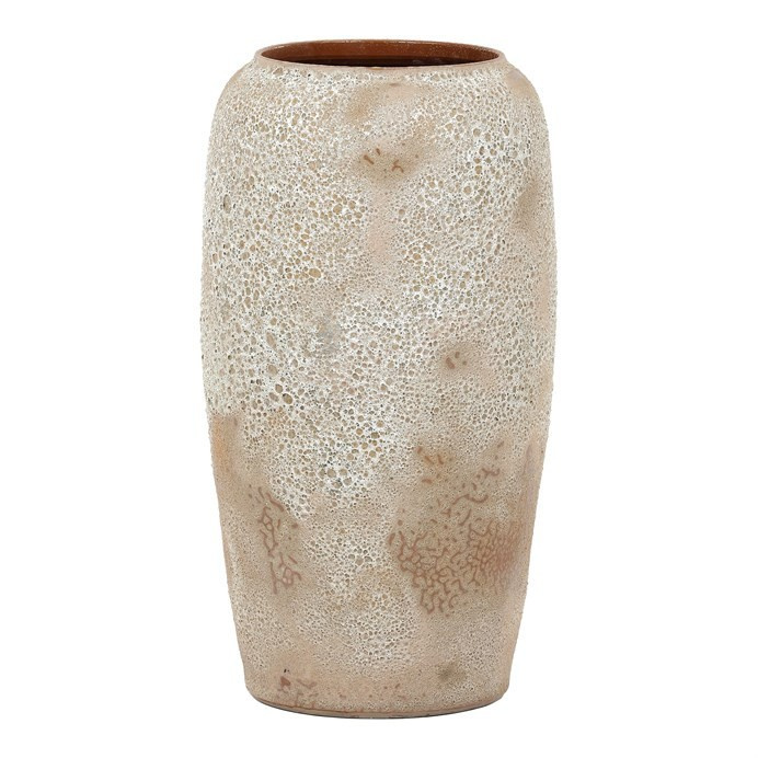 Keramická váza o výšce 70 cm v jemné světle béžové barvě připomíná tvar starověké nádoby. Mírně zaoblený design a střídání odstínů béžové až bílé dodávají váze nadčasový a elegantní vzhled. Ideální pro větší a robustnější rostliny, které se v ní budou skvěle vyjímat. Působí jako výrazný prvek v každém interiéru.