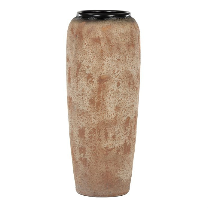 Keramická váza o výšce 90 cm v béžovo-šedých tónech zaujme svým hrubým povrchem a přirozeným střídáním barev. Kulatý tvar, který se směrem nahoru mírně zúžuje, dodává váze elegantní vzhled. Díky své velikosti a stabilitě je ideální i pro větší či robustnější rostliny a květiny, které skvěle vyniknou v každém interiéru.