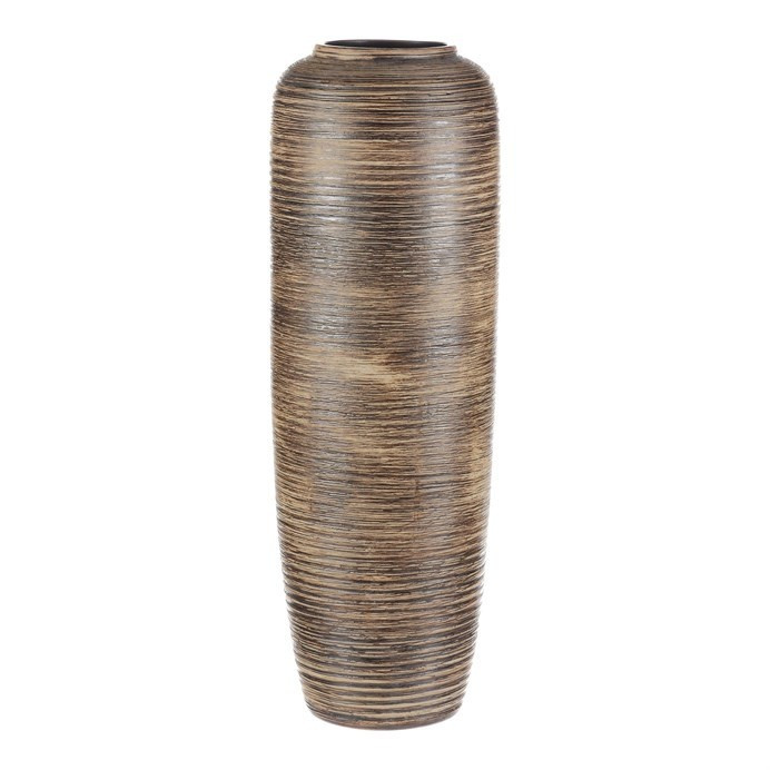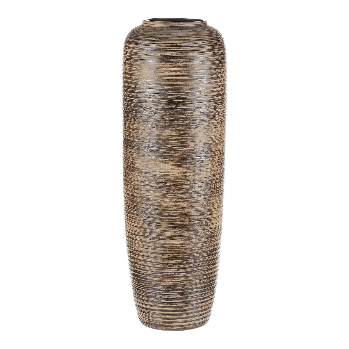 Keramická váza o výšce 60 cm v hnědém provedení zaujme jemným zaobleným tvarem a vodorovnými rýhami, které jí dodávají autentický vzhled ruční práce, jako by ji vytvořil starověký mistr. Skvěle podtrhne krásu každé rostliny a povznese ji na novou úroveň.