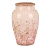 Váza keramická - zaoblená, retro, růžové květy, vel. L