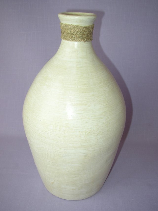 Váza z pálené hlíny zdobená opletením z mořské trávy. Výška 35 cm |