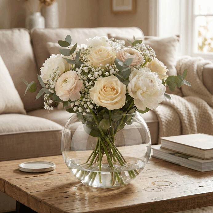 Tato nízká skleněná váza ve tvaru kulaté mísy je ideálním doplňkem pro všechny, kteří rádi experimentují s aranžováním. Své uplatnění najde nejen při pěstování nižších rostlin a sukulentů, ale také při tvorbě stylových dekorací podle vaší fantazie. Díky univerzálnímu designu se hodí do každého interiéru. Ať už ji umístíte na stůl, parapet nebo polici, vždy vynikne svou jednoduchostí a elegancí.
