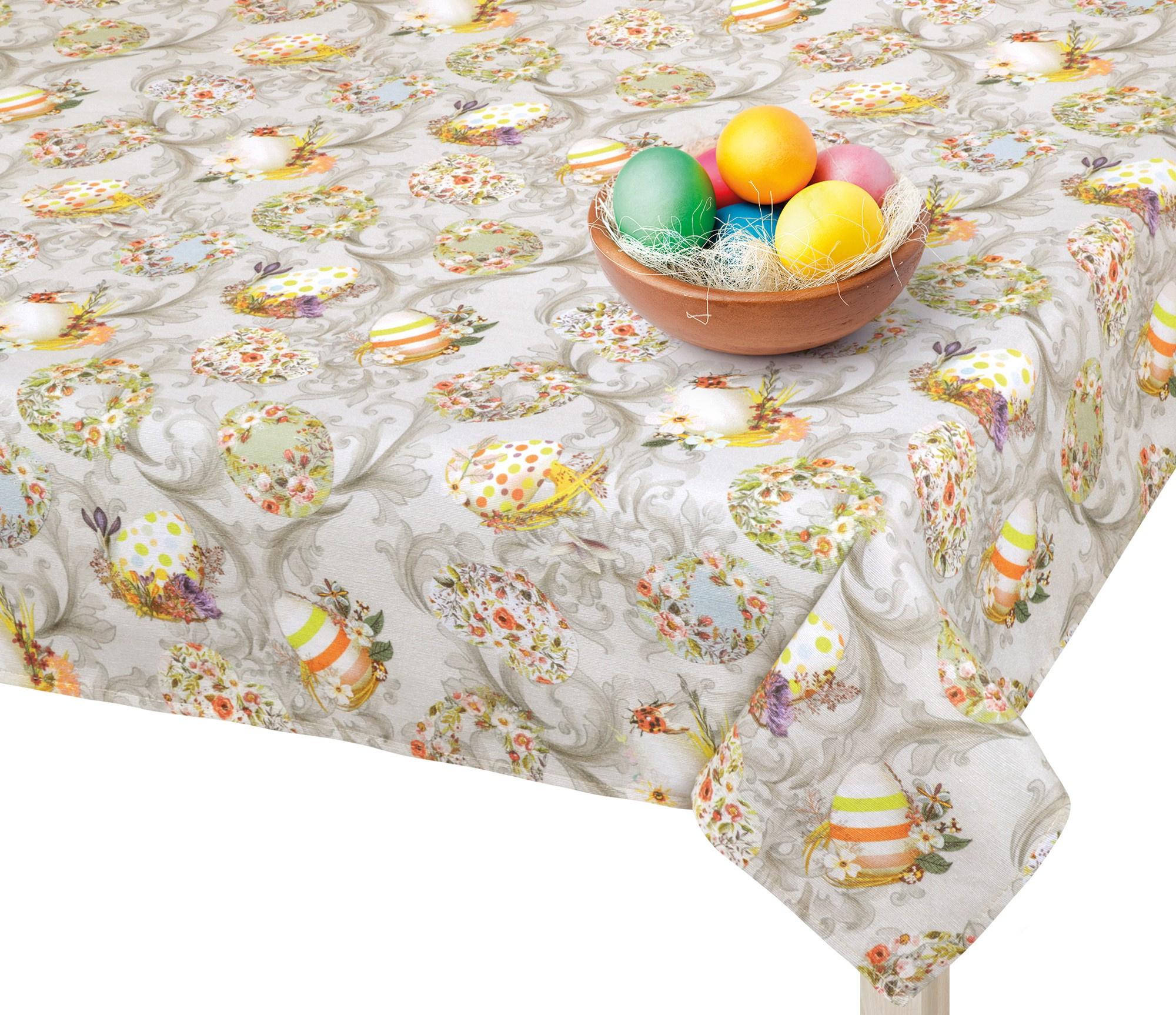 Tento ubrus s velikonočním motivem je ušit z kvalitního materiálu, který se odolný vůči poškození. Na Vašem stole bude skvěle vynikat a stane se oblíbeným doplňkem jarních svátků nejen ve Vaší kuchyni. Ve stejném designu je možné objednat i kuchyňskou chňapku nebo povláček na polštářek.