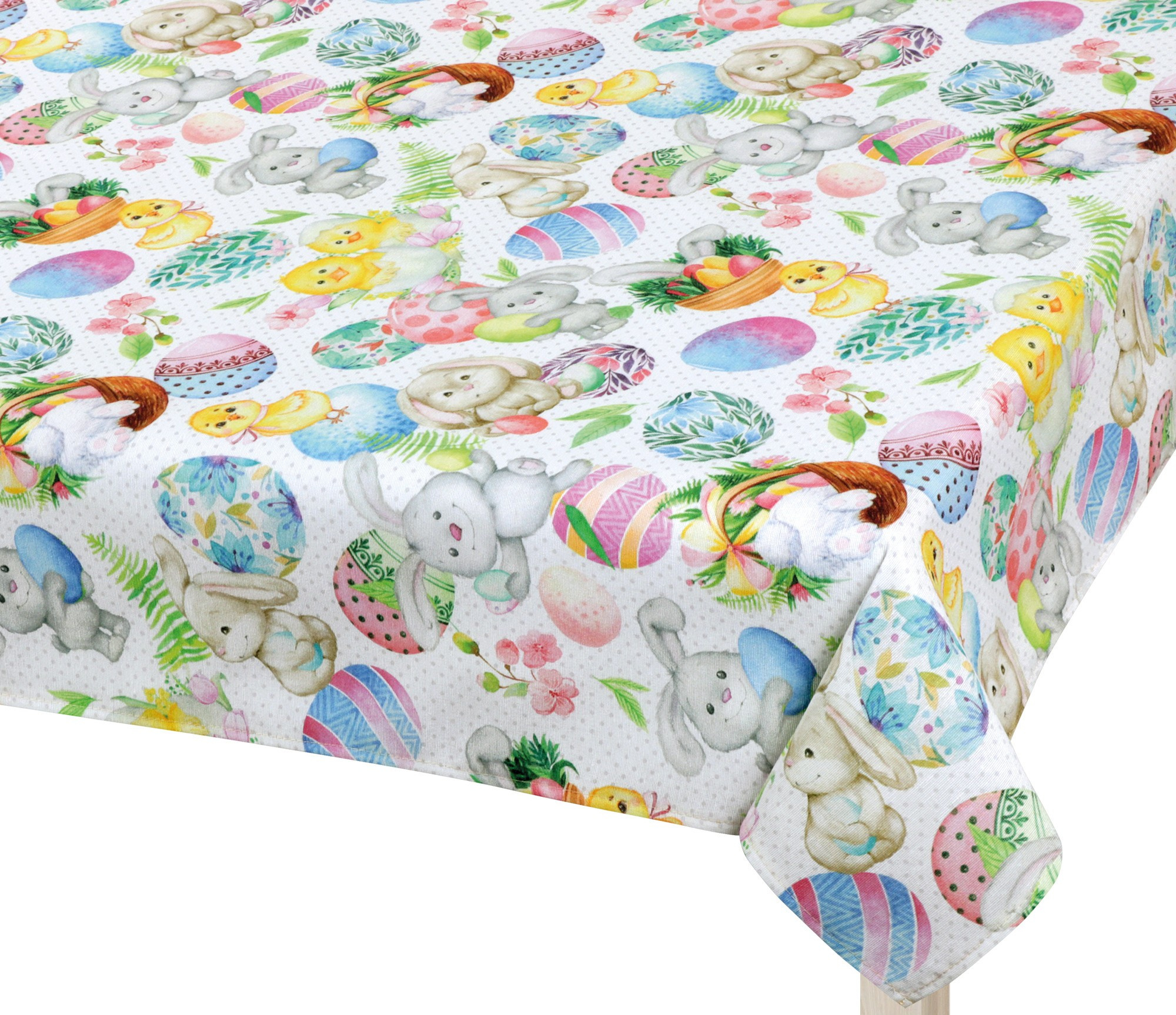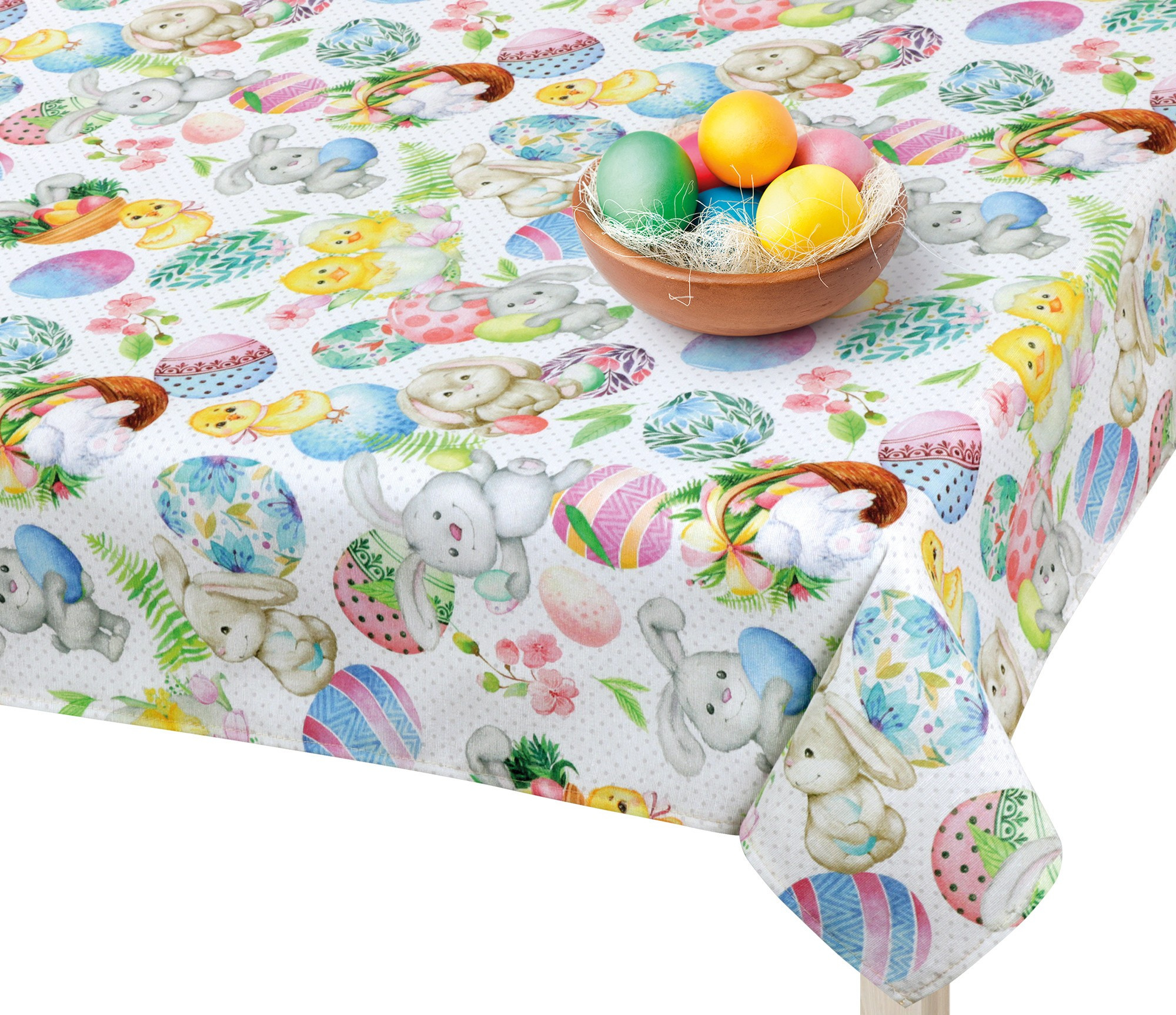 Tento ubrus s velikonočním motivem je ušit z kvalitního materiálu, který se odolný vůči poškození. Na Vašem stole bude skvěle vynikat a stane se oblíbeným doplňkem jarních svátků nejen ve Vaší kuchyni. Ve stejném designu je možné objednat i kuchyňskou chňapku nebo povláček na polštářek.