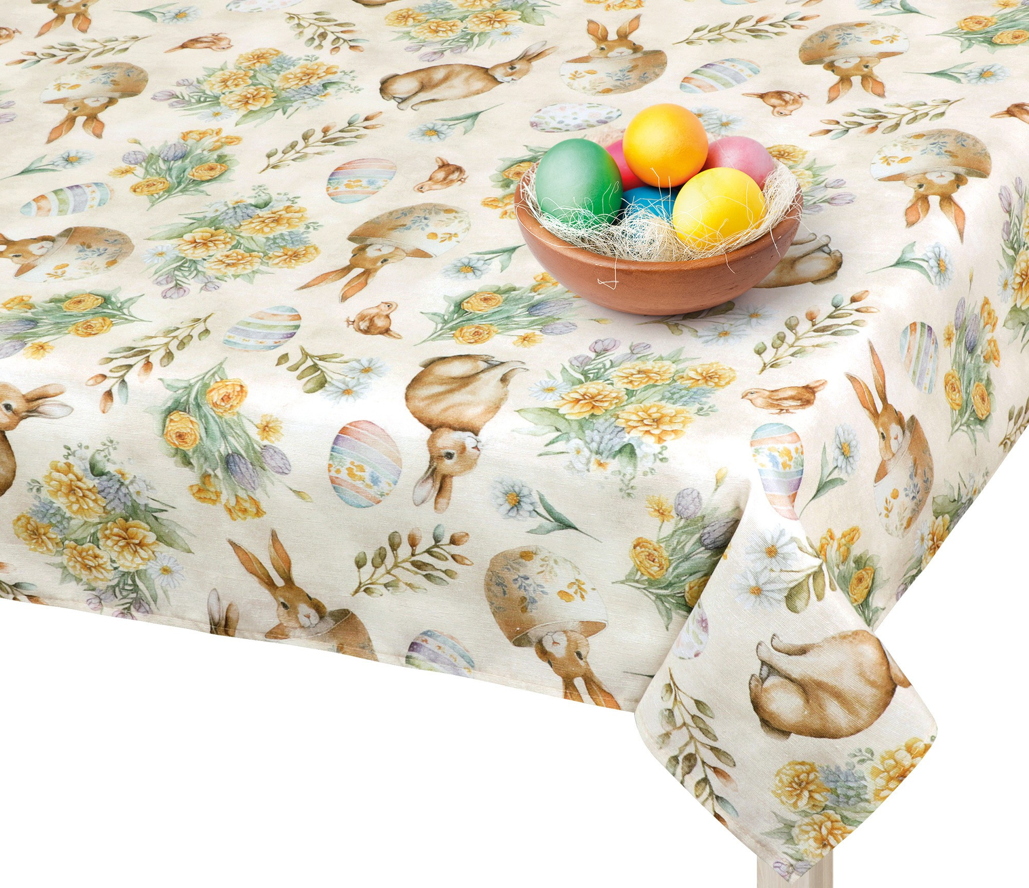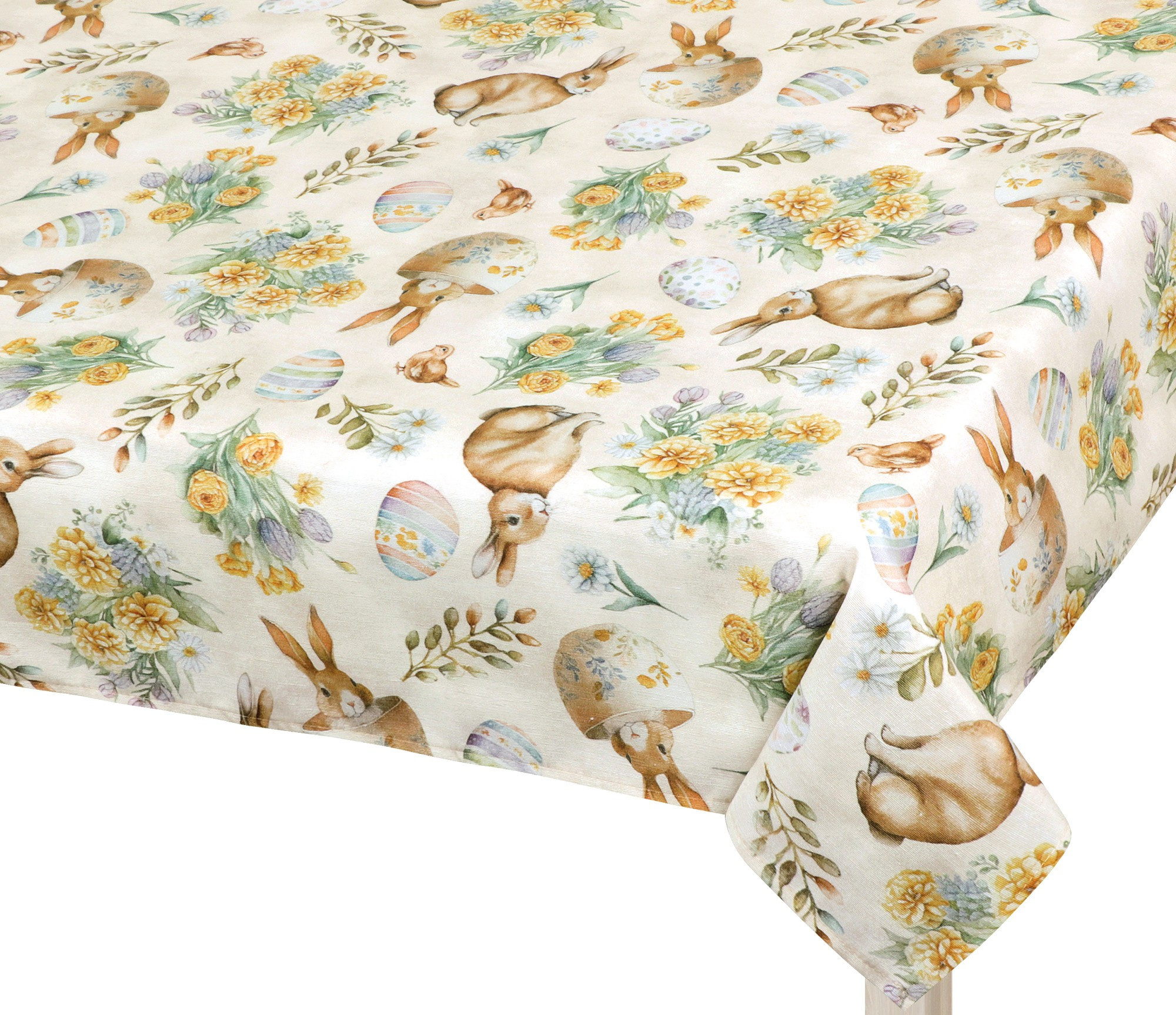 Tento ubrus s velikonočním motivem je ušit z kvalitního materiálu, který se odolný vůči poškození. Na Vašem stole bude skvěle vynikat a stane se oblíbeným doplňkem jarních svátků nejen ve Vaší kuchyni. Ve stejném designu je možné objednat i kuchyňskou chňapku nebo povláček na polštářek.