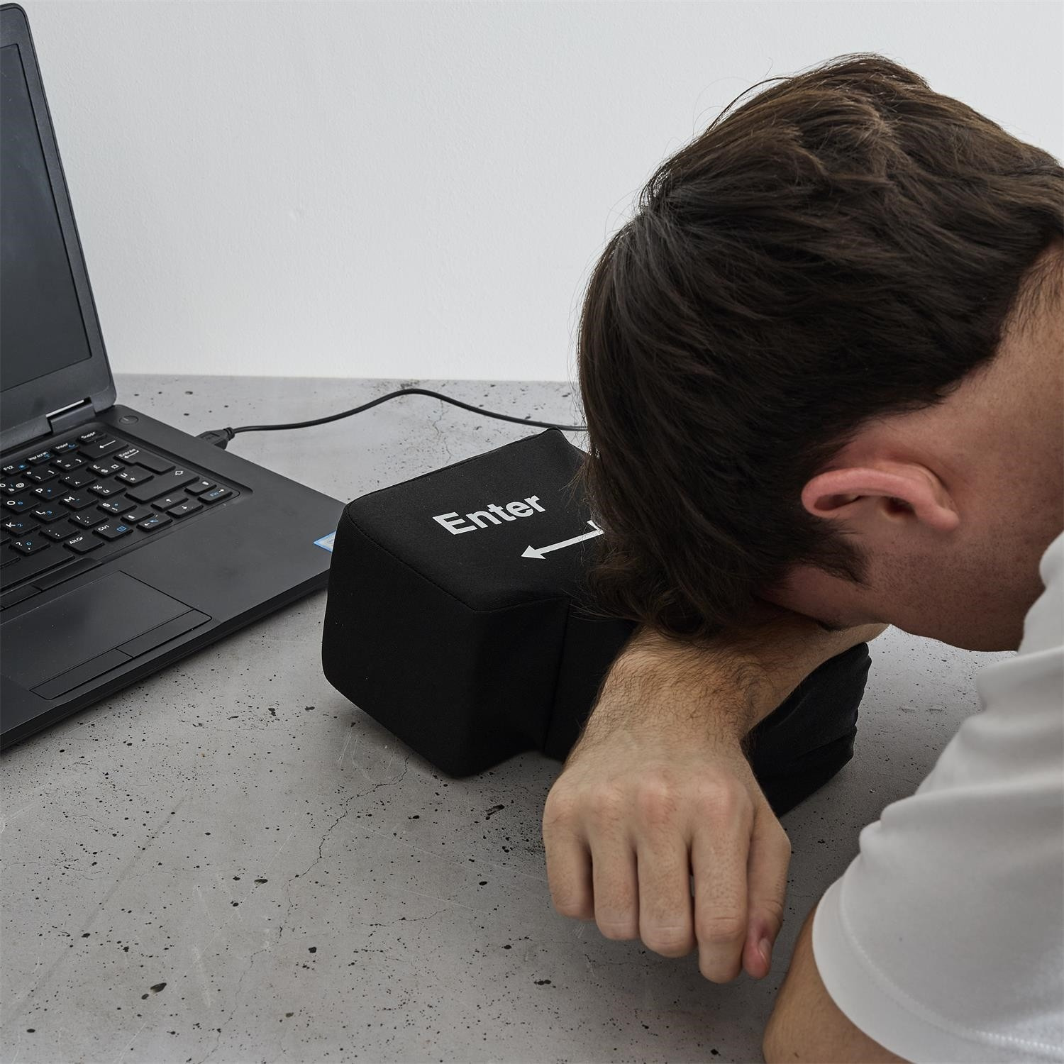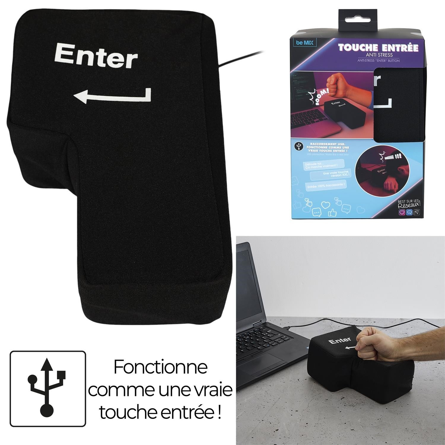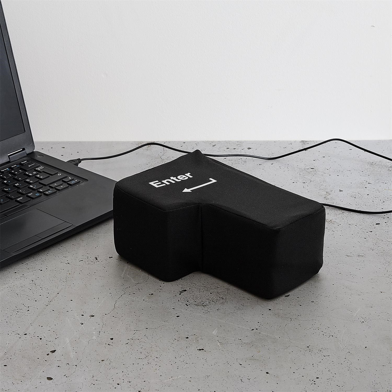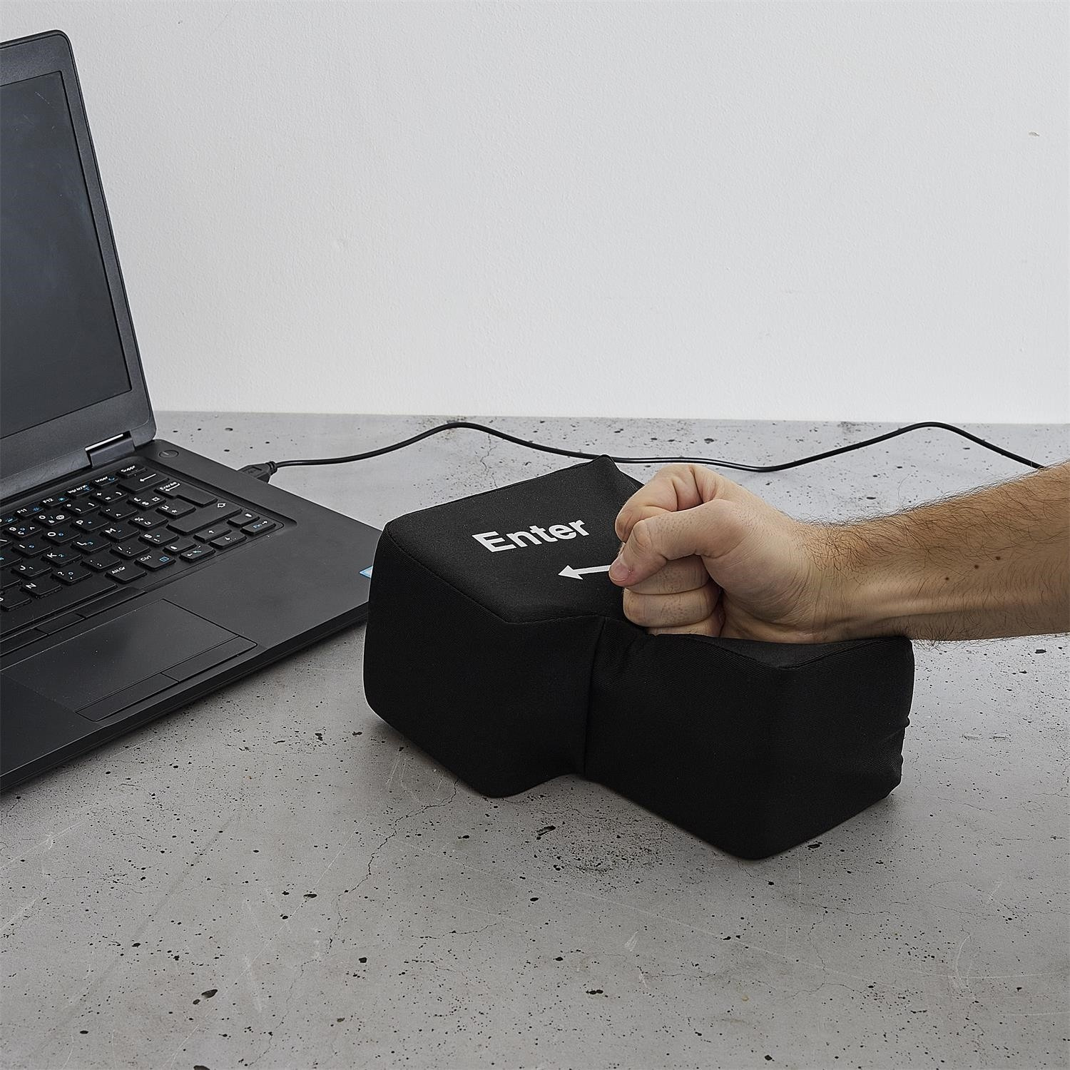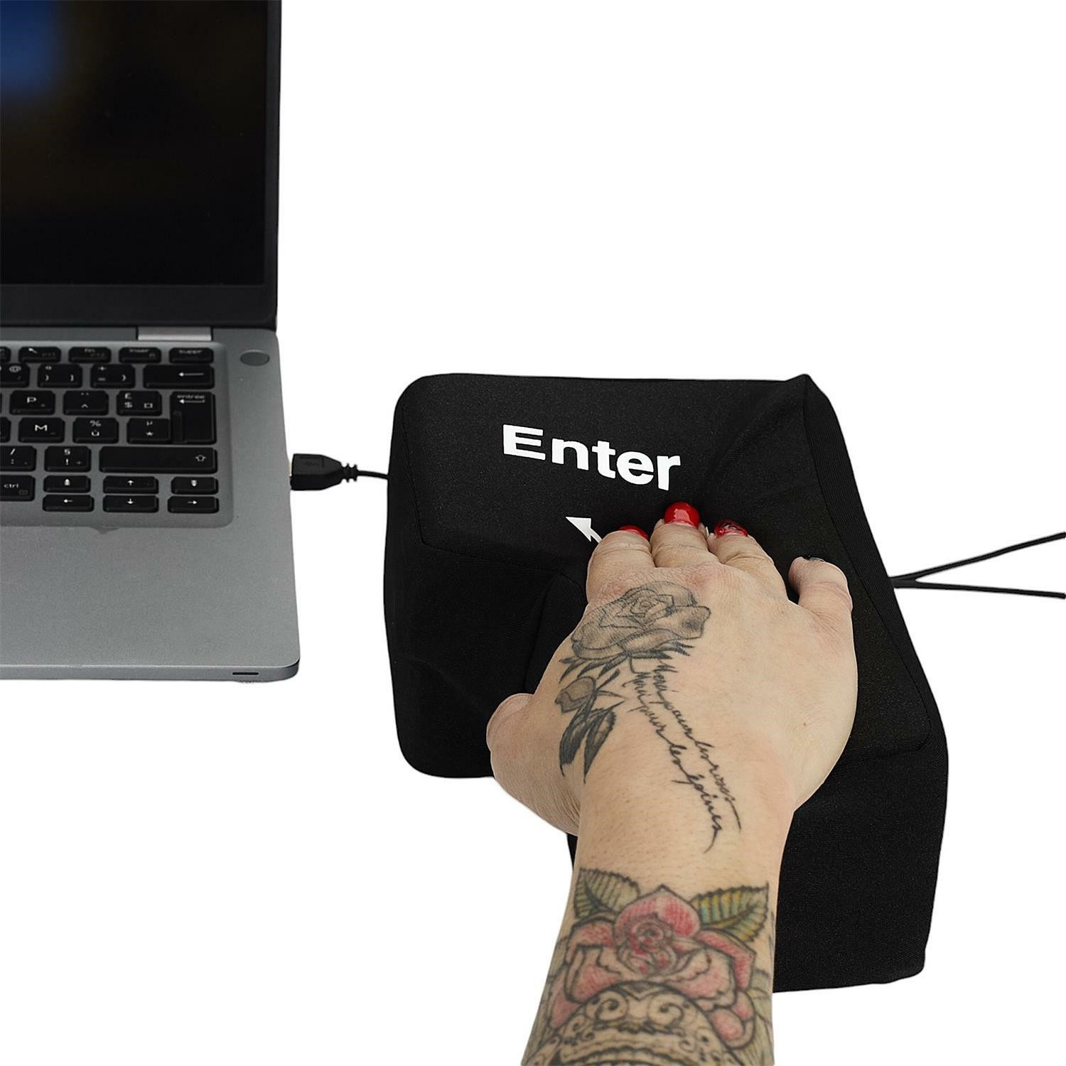 To je inovativní antistresová pomůcka ve formě velkého, měkkého klávesu Enter, který po připojení přes USB funguje jako skutečné tlačítko na klávesnici. Produkt kombinuje funkci hračky snižující stres s praktickým využitím – umožňuje uživateli doslova „praštit do Enteru“, aby potvrdil příkaz na počítači. Ideální do kanceláře i pro práci na dálku, vyniká jednoduchou obsluhou, solidním provedením a vysokou odolností proti nárazům. Skvělý dárek a atraktivní doplněk v kanceláři.
