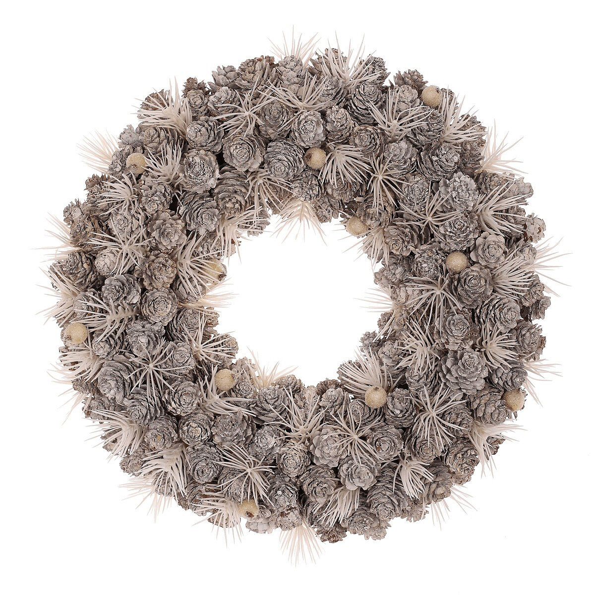 Věnec zdobený - pr. 32 cm, šišky, jehličí a bobule, šedý
