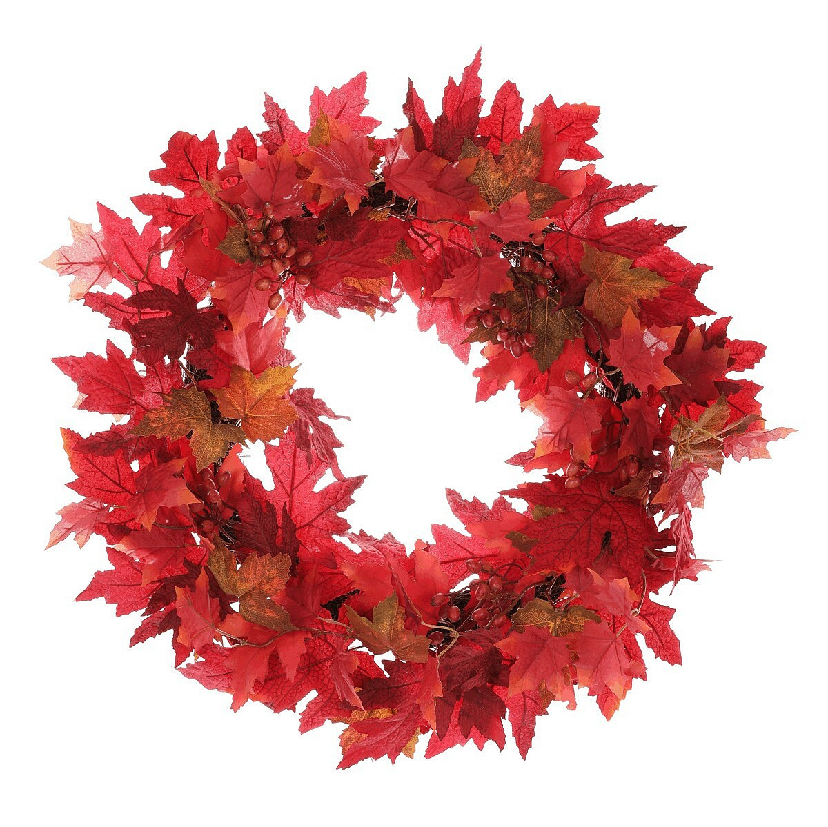 Věnec umělý - pr. 60 cm, červené listí a bobule