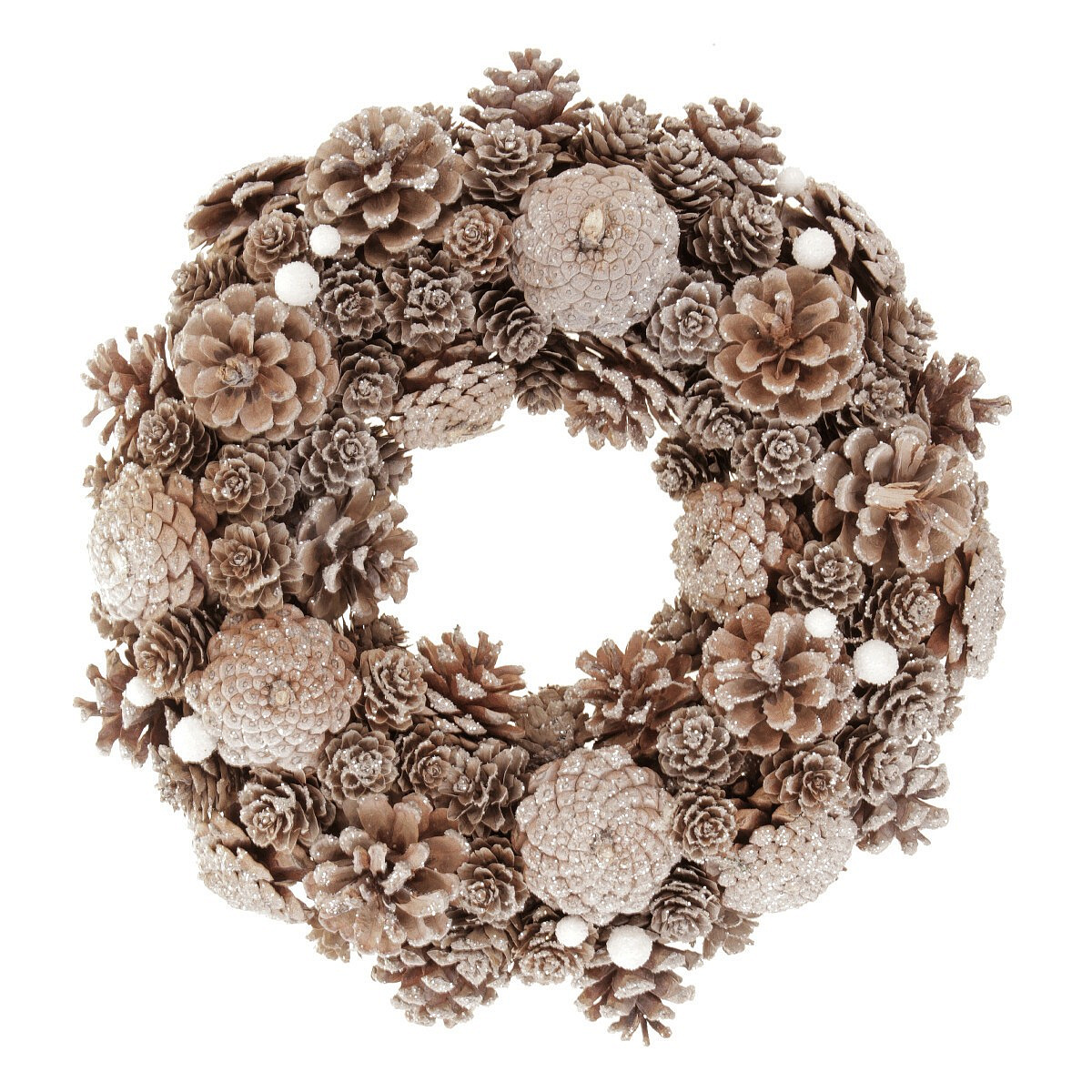 Věnec zdobený - pr. 34 cm, se šiškami, hnědý