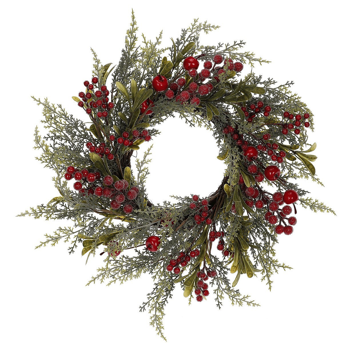 Věnec zelený (o50 cm) - červené bobule a jablíčka.