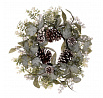 Věnec zelený - pr. 45 cm, lístky, šišky a bílé bobule s perletí