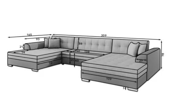 Sedací souprava Vento se pyšní moderním a elegantním designem, který se snadno přizpůsobí jakémukoli interiéru. S celkovou šířkou 359 cm, hloubkou 165 cm a maximální výškou 78 cm nabízí dostatek prostoru pro celou rodinu i přátele. Její rohový tvar je ideální pro využití prostoru v místnosti a vytváří útulný koutek pro relaxaci.
