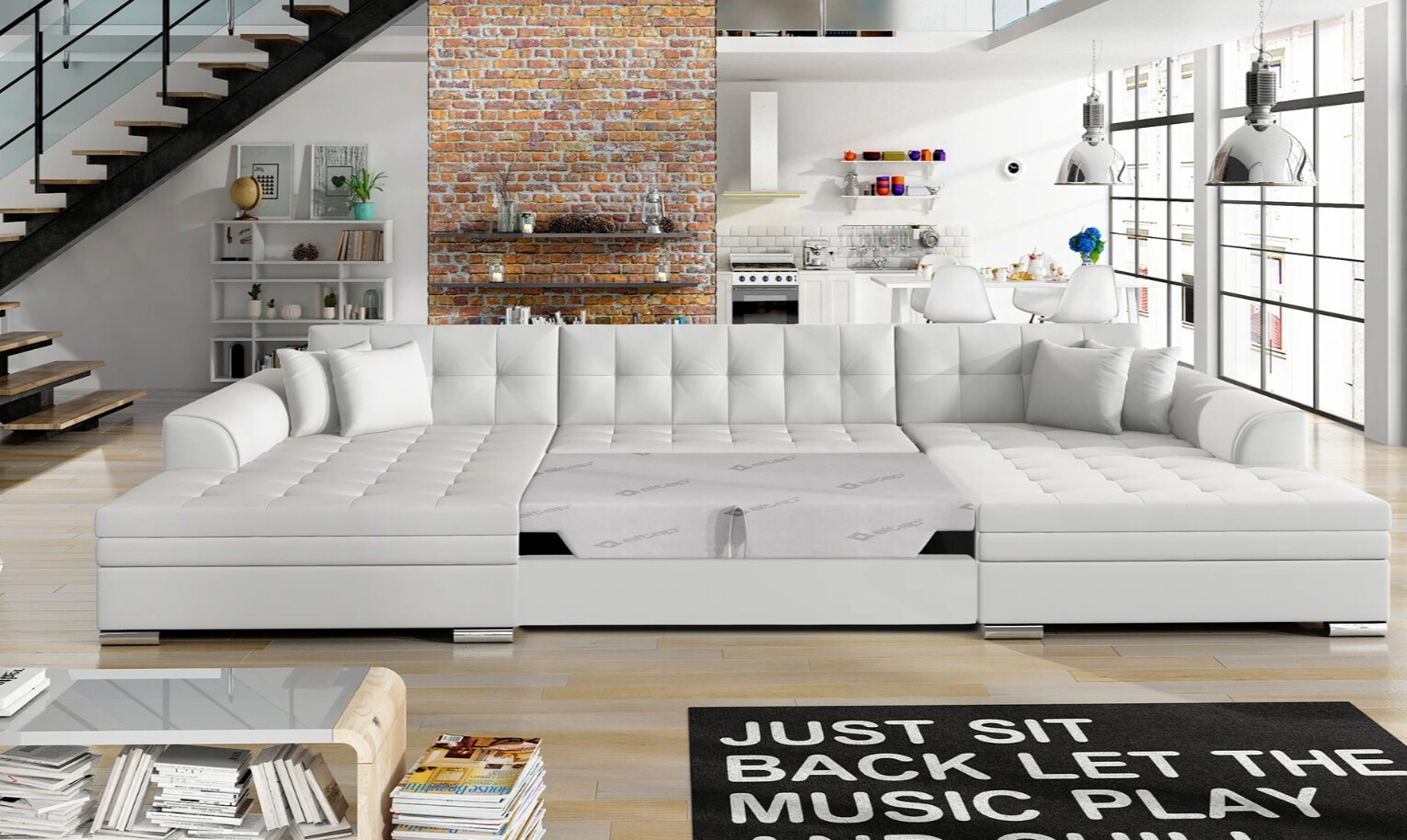 Jedním z hlavních lákadel této sedací soupravy je její schopnost rozkládání. S rozkládací funkcí snadno proměníte sedací soupravu na pohodlné lůžko s plochou na spaní 126 x 305 cm. To je ideální řešení pro nečekané návštěvy nebo pro ty, kteří si rádi dopřejí odpolední siestu.