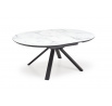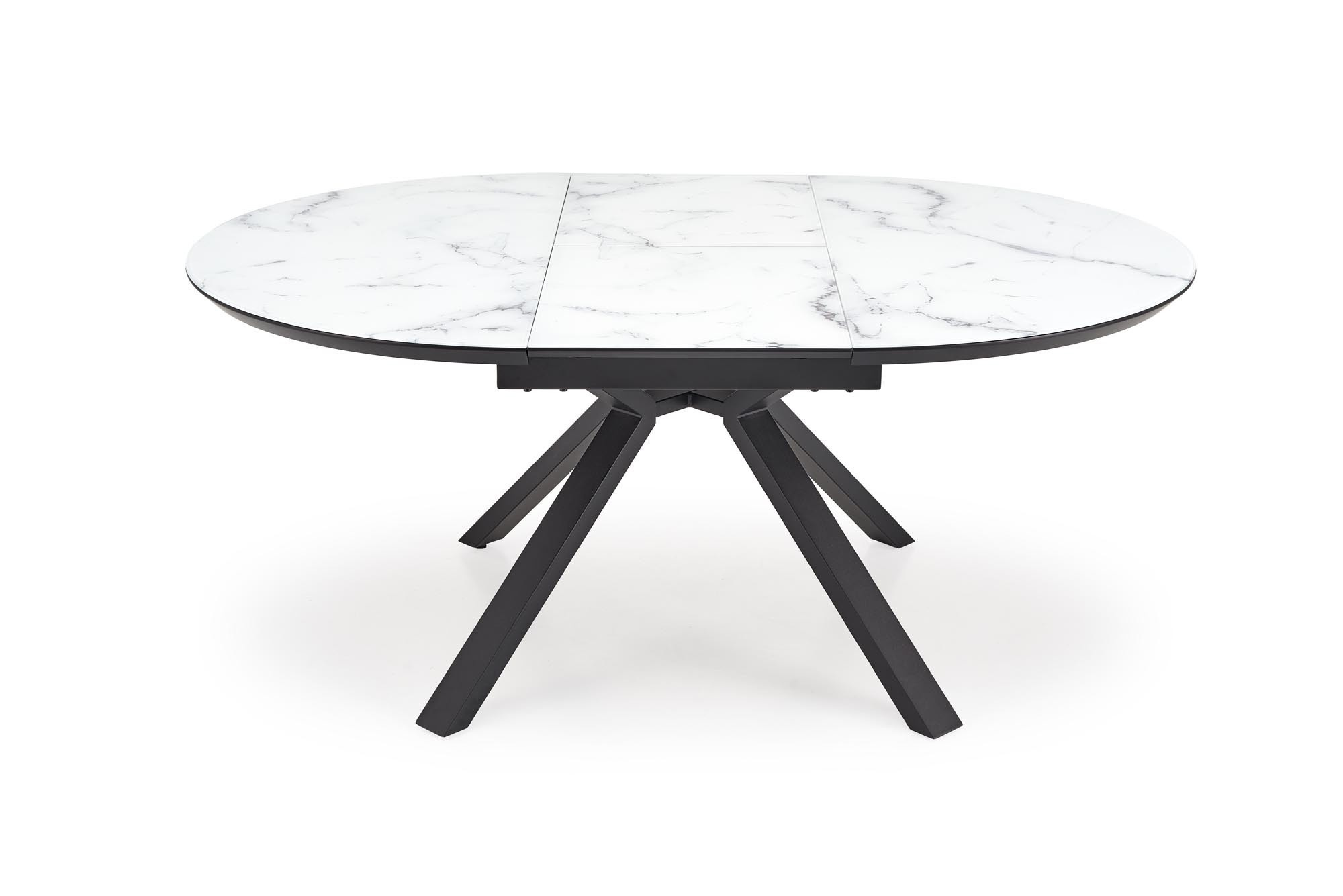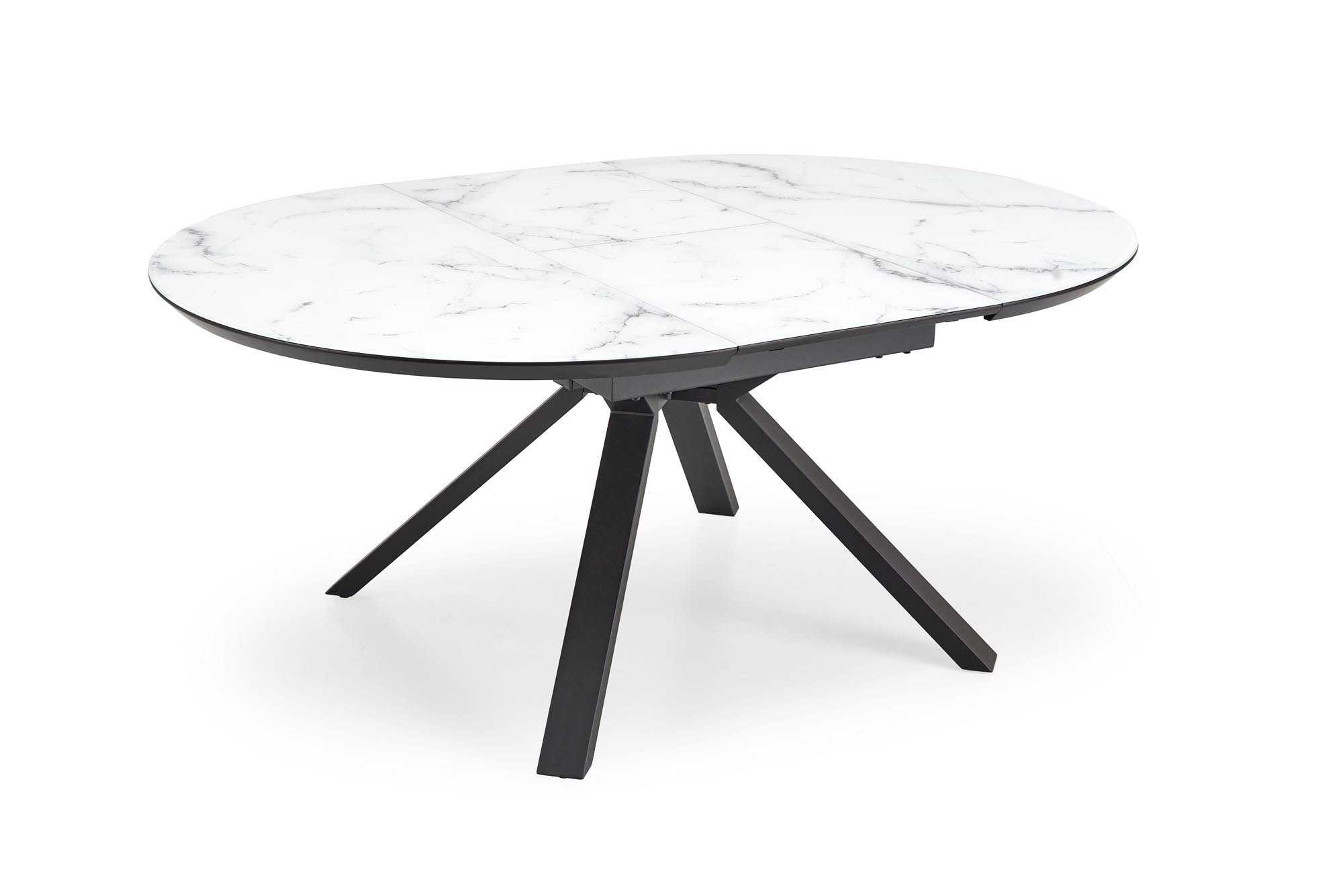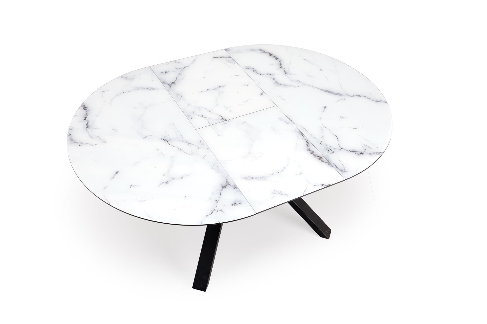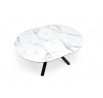 rozkládací stůl, rozměry: 130-180/130/76 cm, materiál: sklo / lakovaná MDF / práškově lakovaná ocel, barva: deska - bílý mramor, nohy - černé