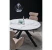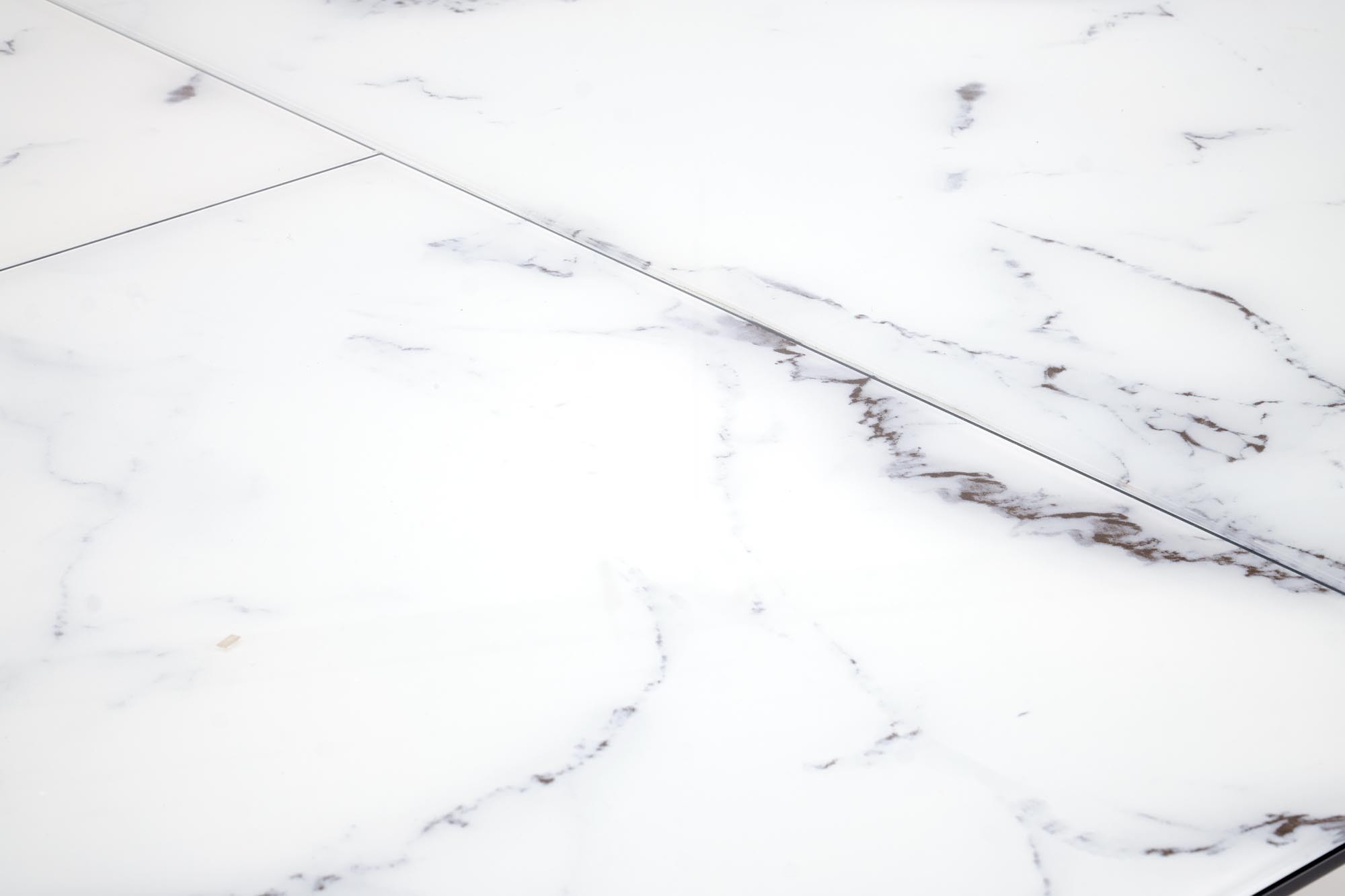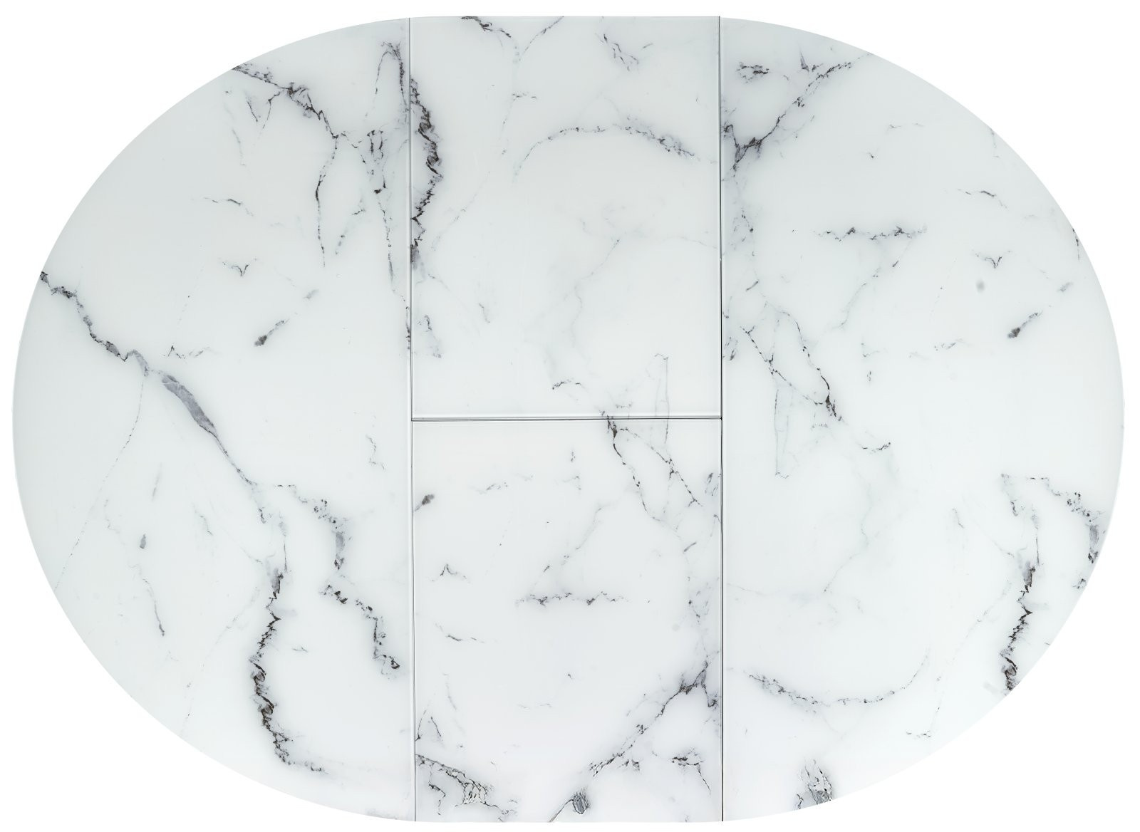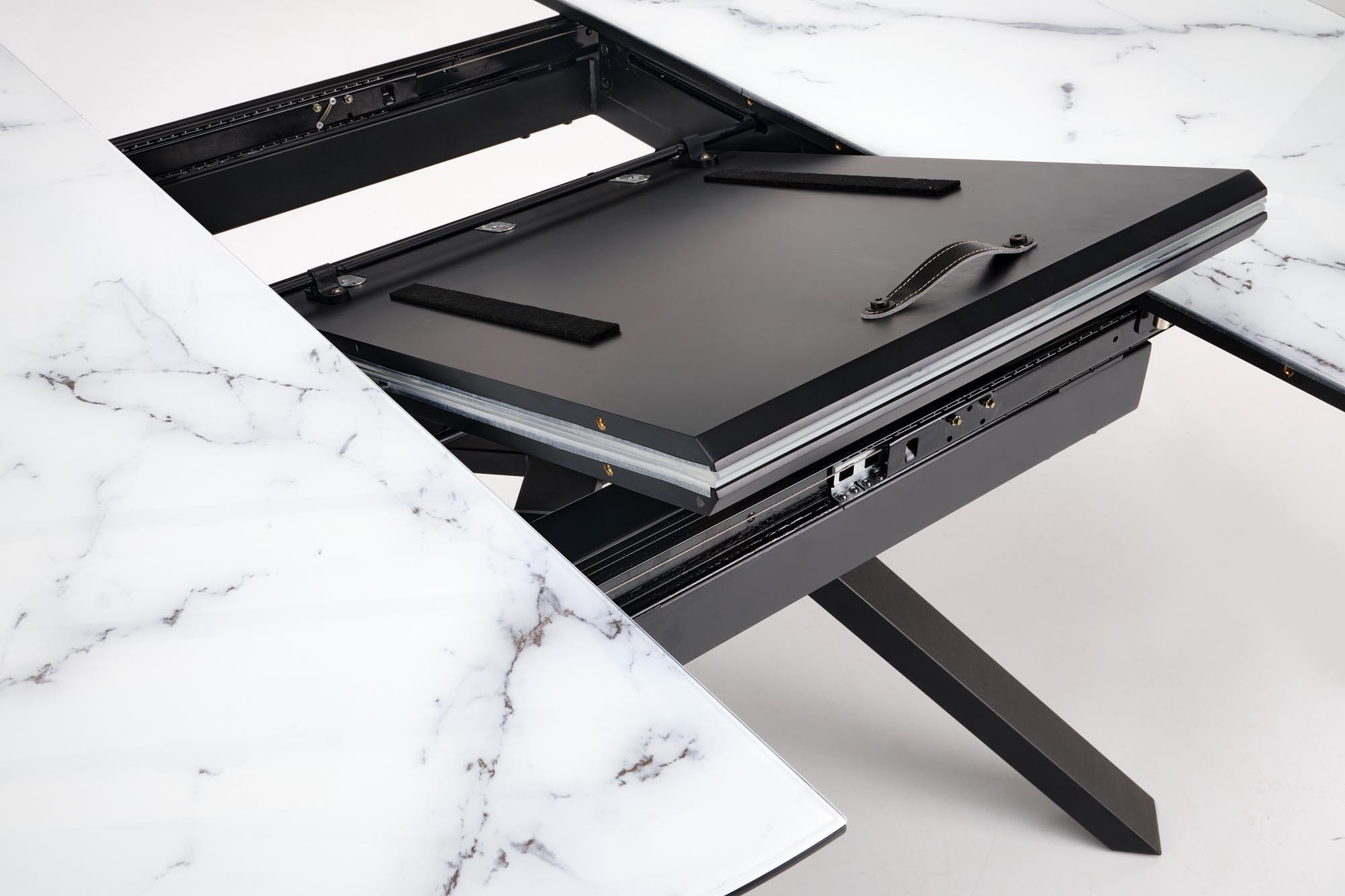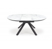 rozkládací stůl, rozměry: 130-180/130/76 cm, materiál: sklo / lakovaná MDF / práškově lakovaná ocel, barva: deska - bílý mramor, nohy - černé