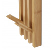 Nástěnný věšák z masivního bambusu v přírodním odstínu nabízí praktické a prostorově úsporné řešení pro zavěšení oděvů či doplňků. Skládací design umožňuje snadné rozložení a opětovné složení podle potřeby, což šetří místo v interiéru. Věšák je tvořen čtyřmi vertikálními lištami s pevně připevněnými háčky, které jsou rozmístěny ve třech úrovních pro pohodlné zavěšení různých předmětů. Bambusové provedení zajišťuje pevnost a stabilitu, zároveň materiál snadno udržuje přirozený vzhled a je odolný vůči běžnému opotřebení. Kompaktní rozměry a jednoduchý montážní systém umožňují jeho využití v předsíních, koupelnách nebo kancelářích.