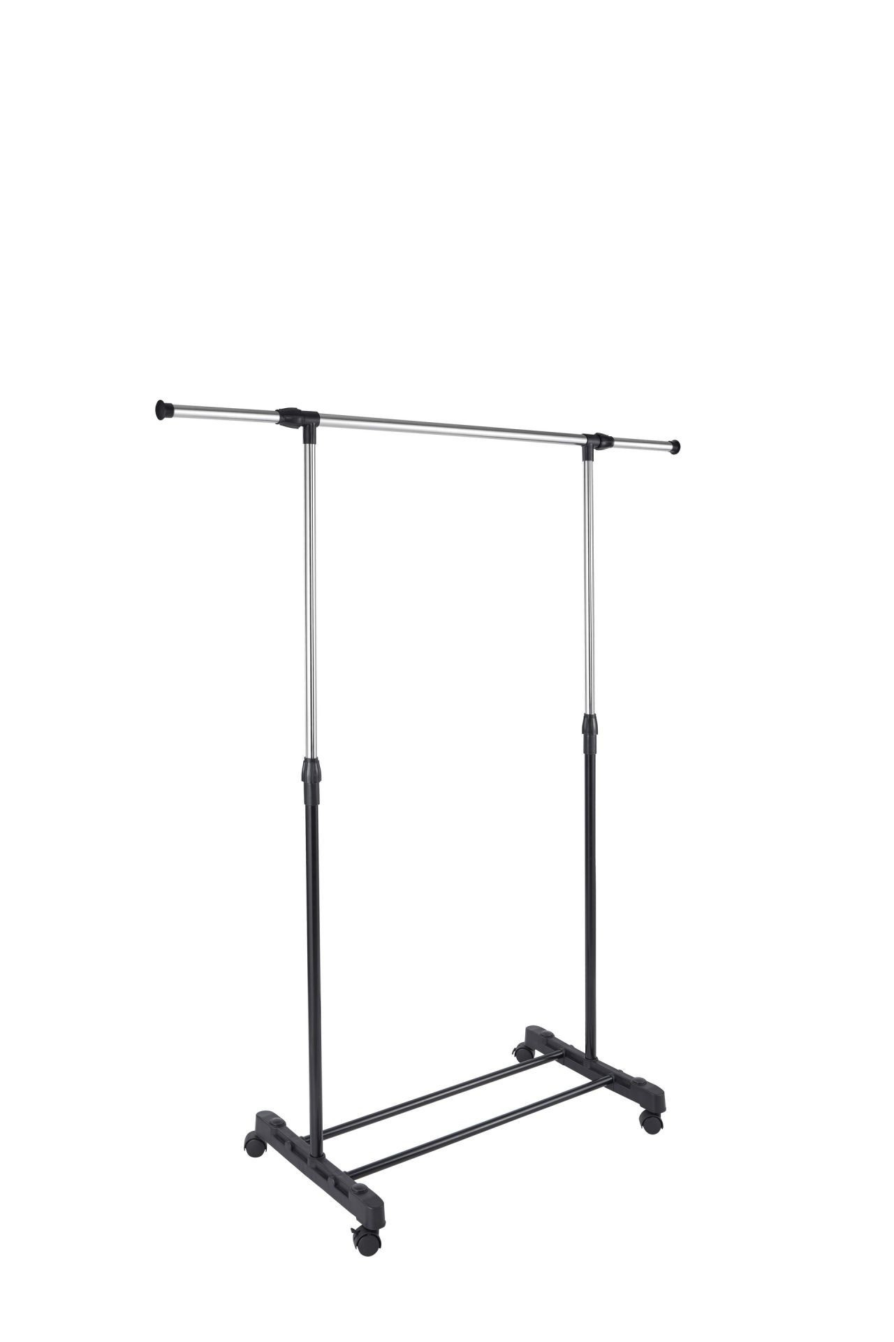 Rozměry: - nastavitelná výška: 100-170 cm - délka: 80 cm (dole), 125 cm (nahoře) - šířka: 42 cm Materiál: - chromovaný kov + práškově lakovaný kov + plast Barva: - černá