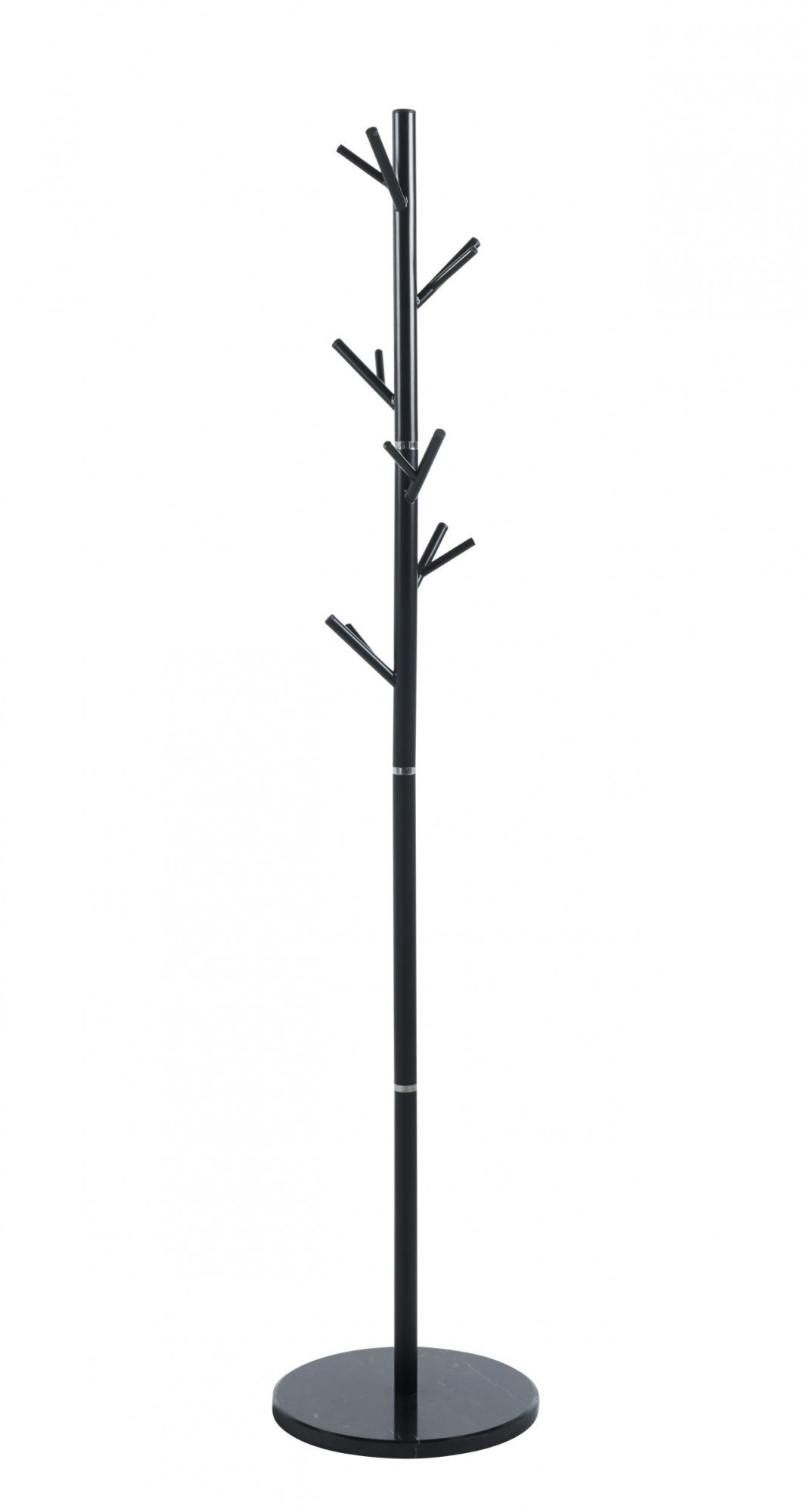 Rozměry: - celková výška: 175 cm - průměr základny: 36 cm Materiál - kov lakovaný práškovou barvou + mramor Barva: - černá