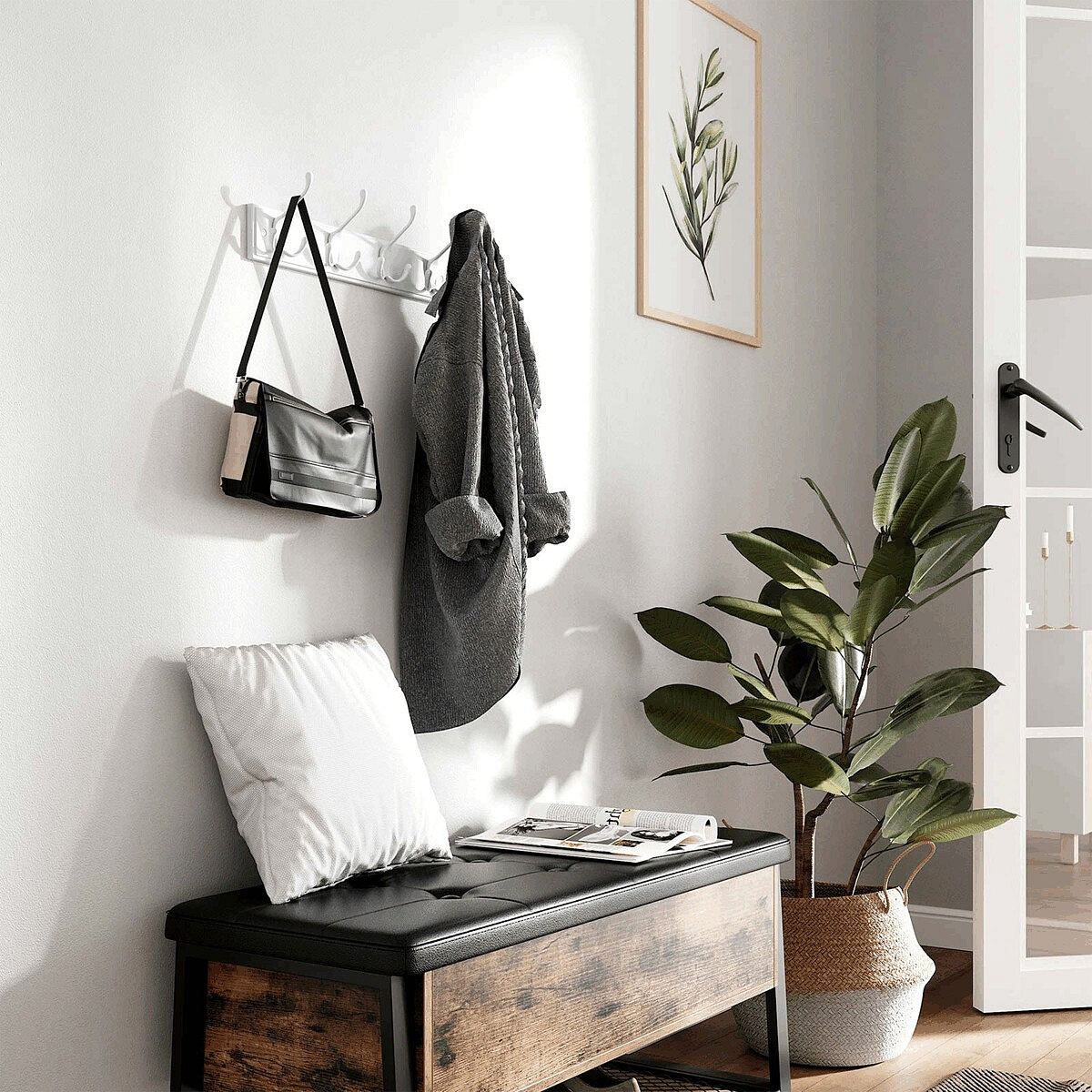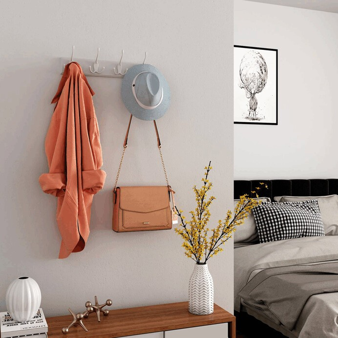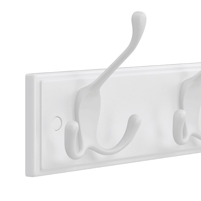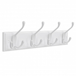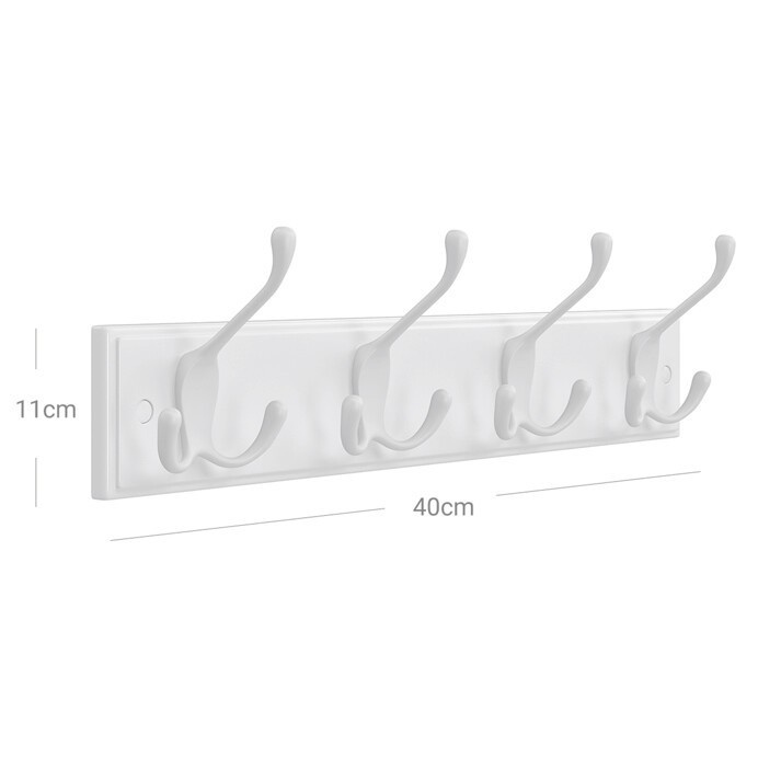 Nástěnný věšák v bílém provedení nabízí čtyři pevné háčky pro praktické zavěšení oděvů či doplňků. Vyroben je z kvalitního dřeva s hladkým povrchem a nadčasovým designem, který snadno zapadne do různých interiérů. Kompaktní rozměry umožňují jeho umístění v předsíních, chodbách nebo ložnicích. Věšák je vybaven otvory pro snadné a pevné připevnění na stěnu. Jeho jednoduchý a čistý vzhled podporuje funkčnost a zároveň estetiku prostoru.