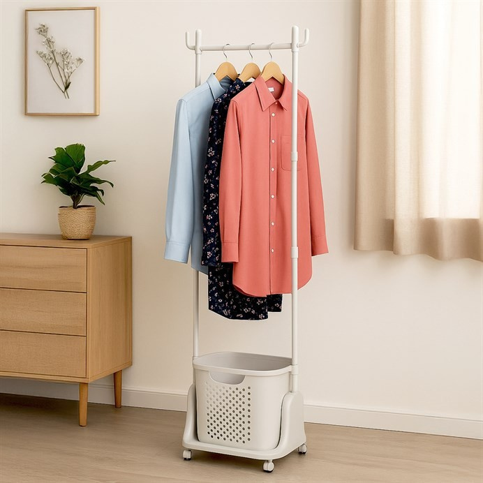 Praktický věšák na šaty s košem na prádlo značky Autronic je dokonalým spojením funkčnosti a elegance. Bílá konstrukce z kvalitního plastu je lehká, stabilní a snadno udržovatelná. Horní část nabízí dostatek prostoru pro zavěšení oblečení, zatímco spodní integrovaný koš na prádlo slouží jako praktický úložný prostor. Díky kolečkům je věšák snadno přemístitelný a hodí se do předsíně, ložnice nebo koupelny. Minimalistický design v bílém provedení zapadne do každého interiéru a usnadní organizaci vašeho domova.