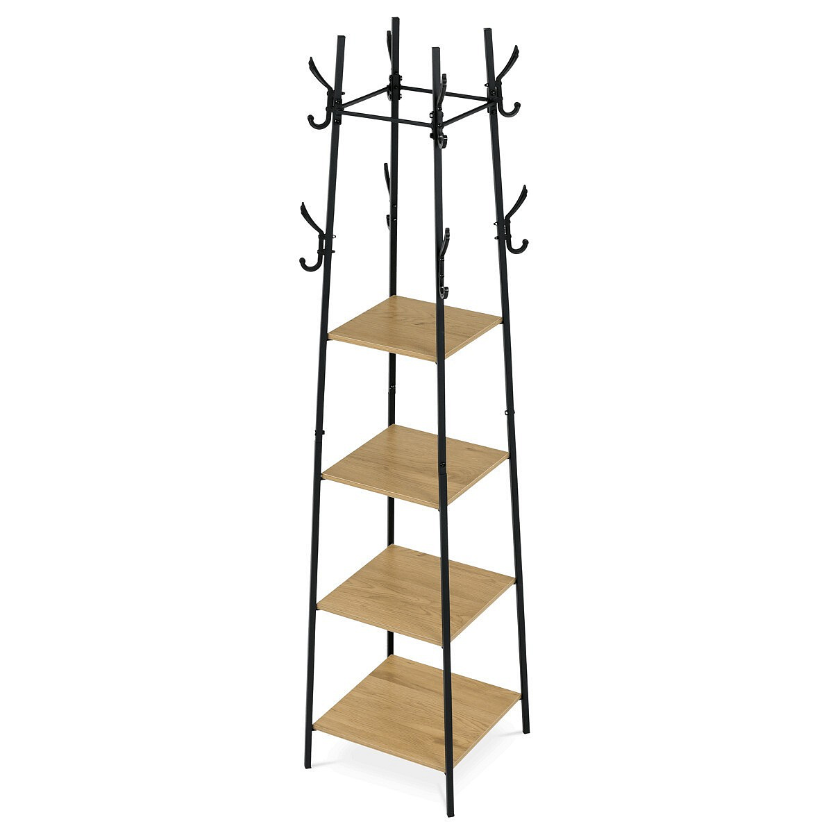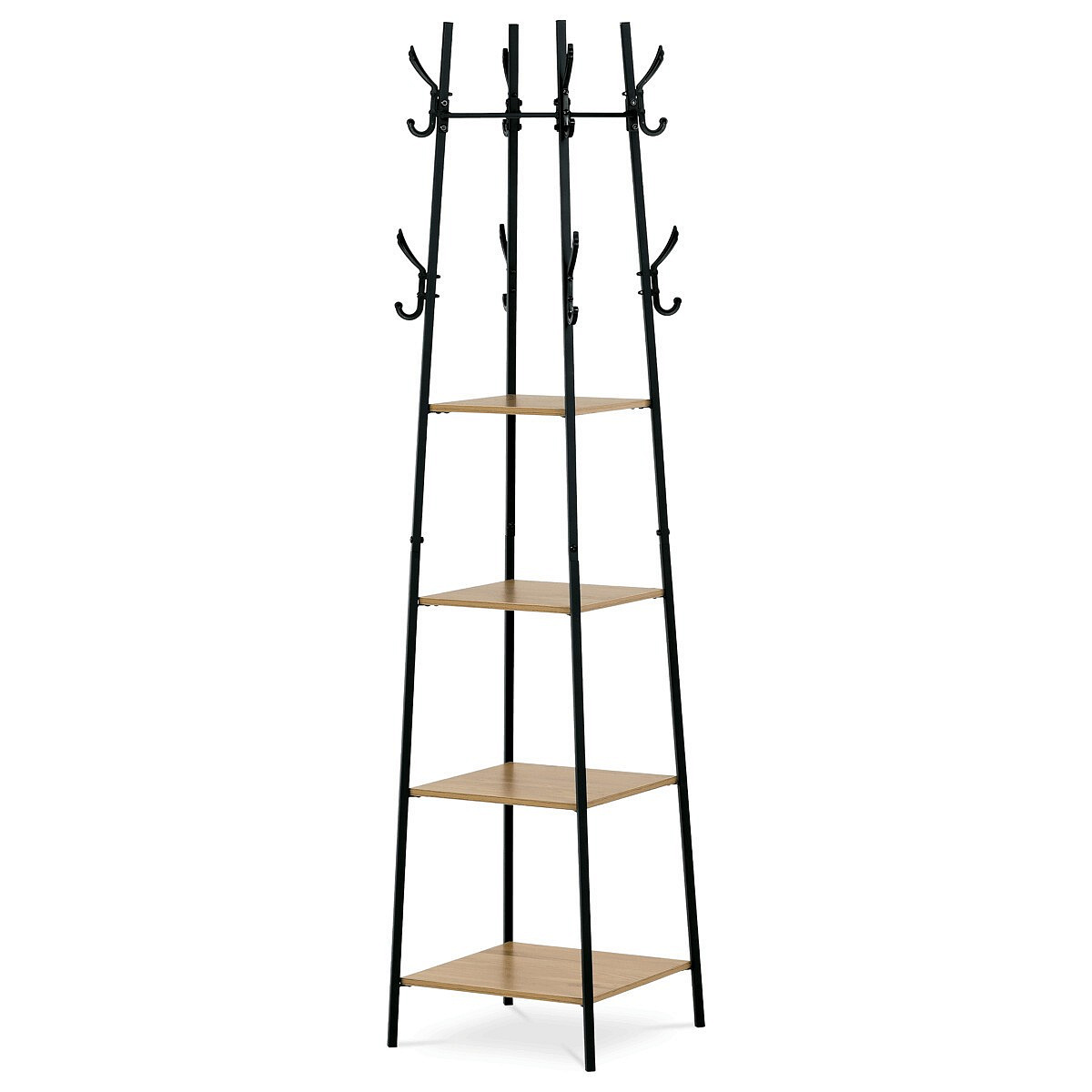 Věšák značky Autronic s praktickými policemi a industriálním designem je ideálním řešením pro organizaci a dekoraci vaší předsíně nebo ložnice. Kombinace dekoru divokého dubu a černého kovového rámu dodává interiéru moderní charakter. Čtyři prostorné police nabízí dostatek místa pro odkládání doplňků, klobouků nebo bot, zatímco háčky umožňují zavěšení kabátů a tašek. Tento multifunkční kousek spojuje styl a praktičnost, což ocení každý, kdo hledá designový a účelný doplněk pro svůj domov.