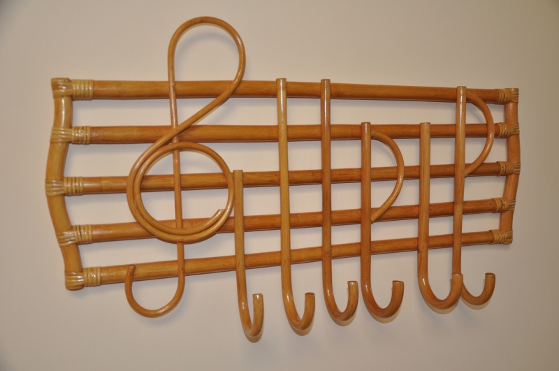 Věšáková stěna z přírodního ratanu v medovém provedení. | Velikost stěny je 85x50 cm. Barva ratanové konstrukce i výpletu je medová.>