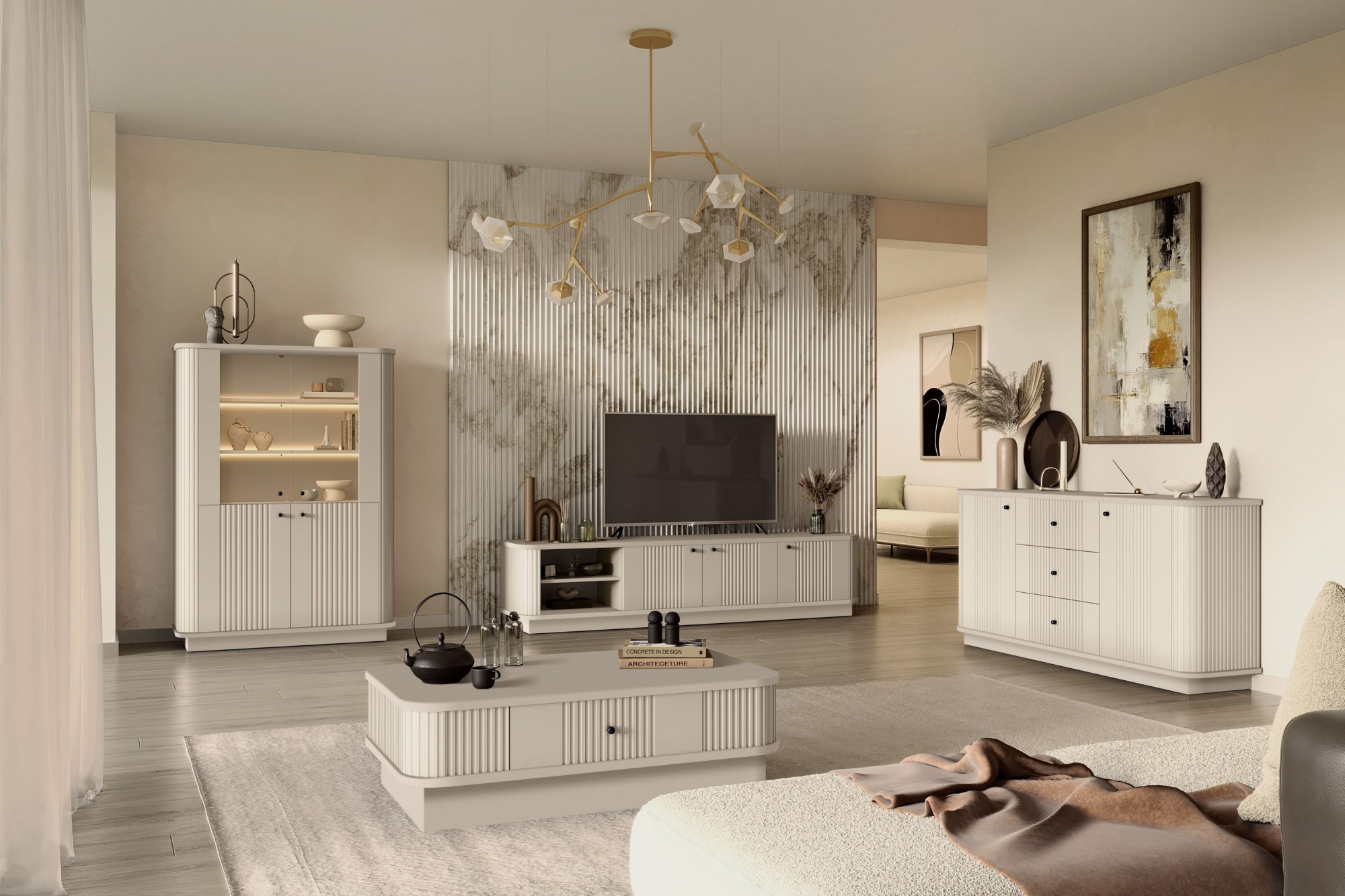 VESPER RTV 187 3D - kašmírové MDF / kašmír / černé úchyty / sokl