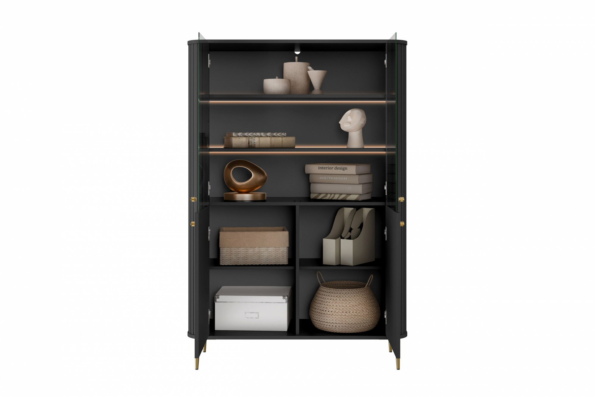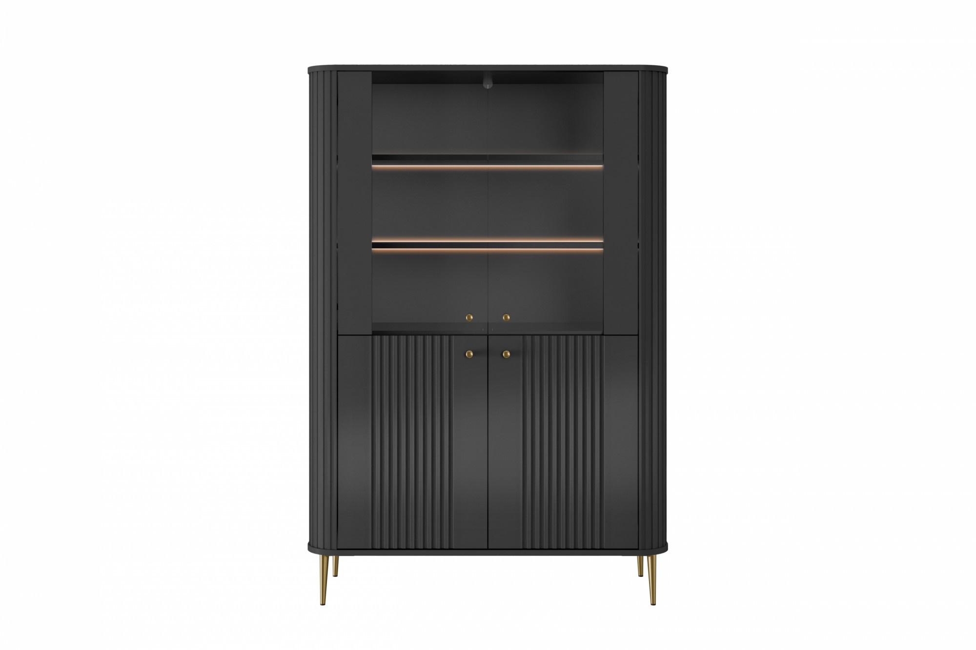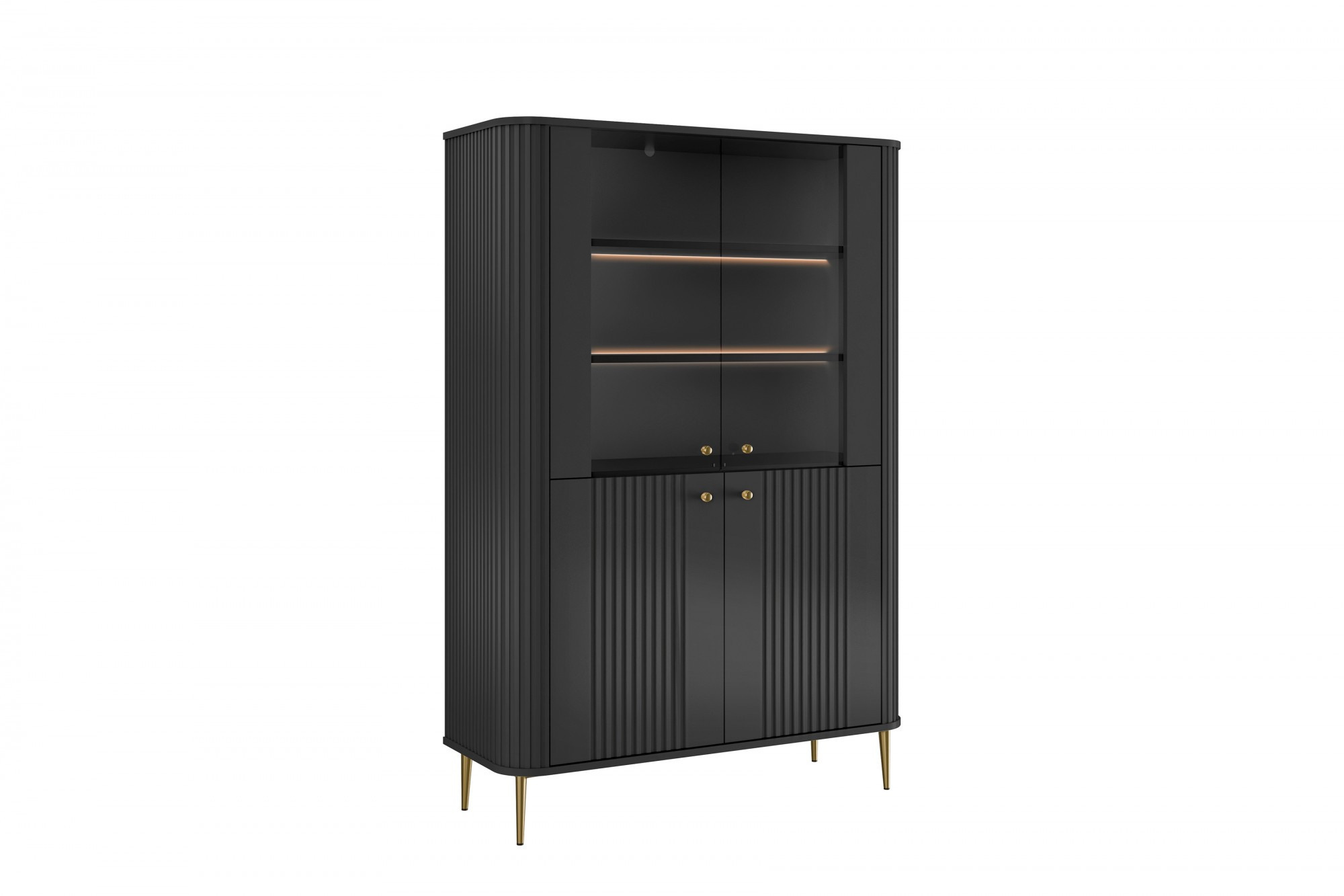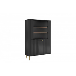 VESPER VITRÍNA 103 4D - černý MDF / černý MDF / zlaté nohy
