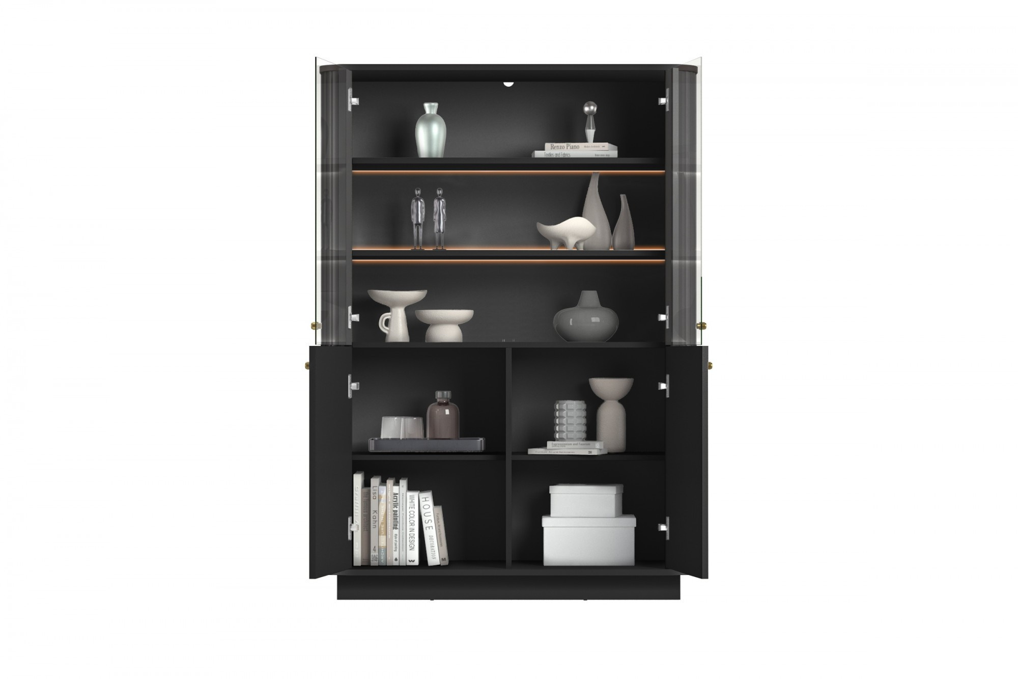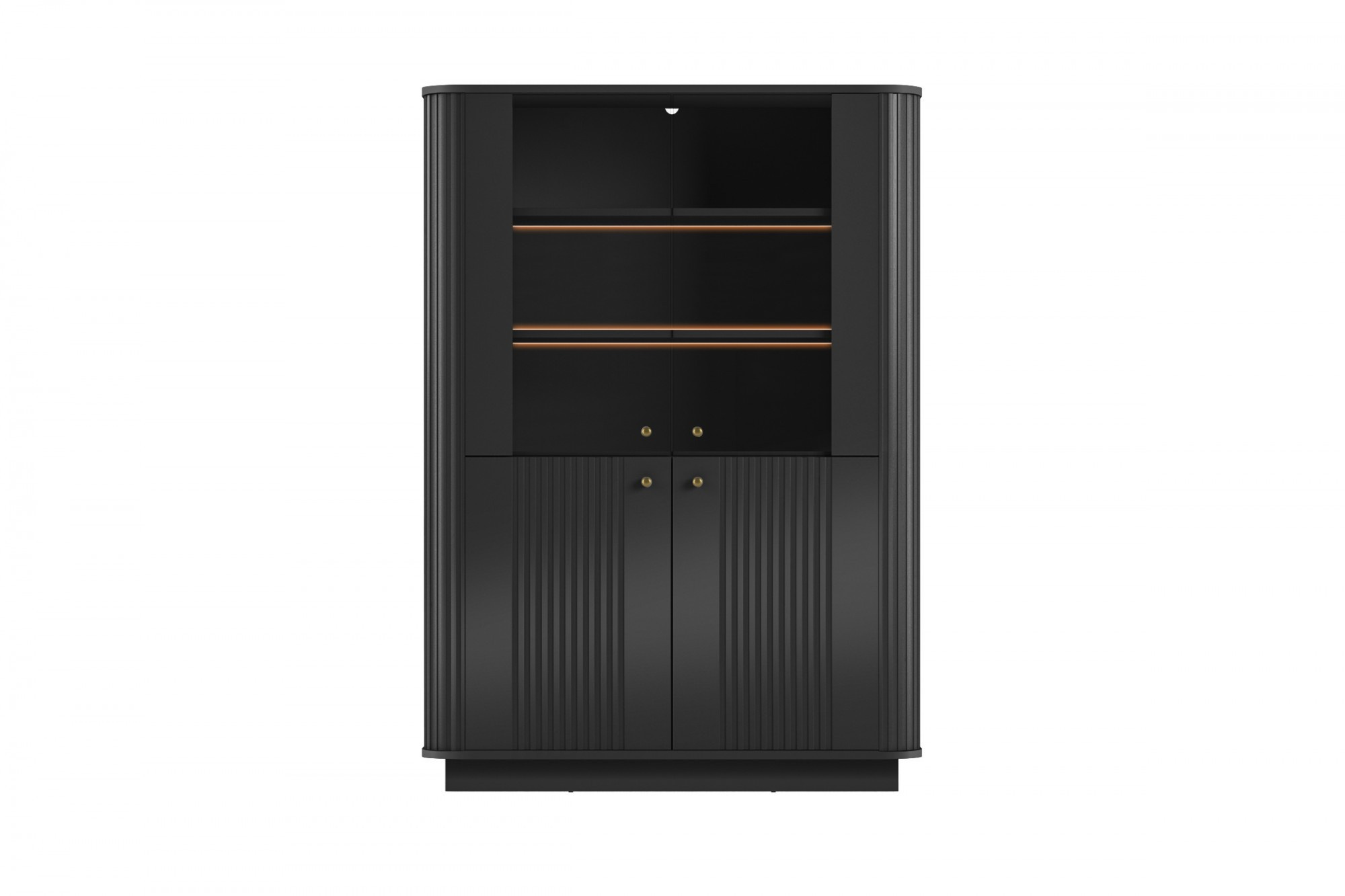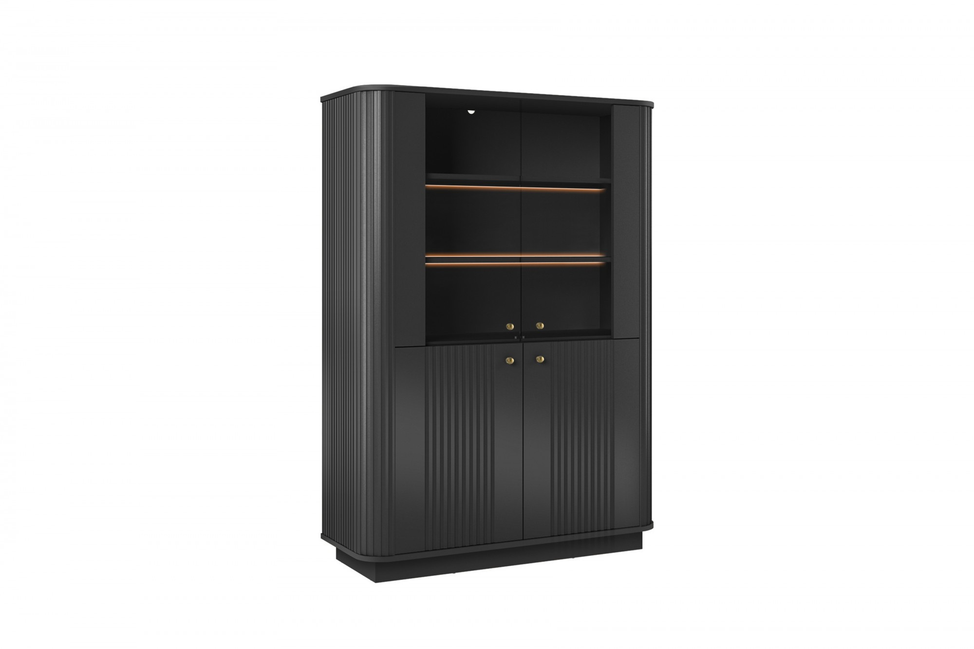 VESPER VITRÍNA 103 4D - černý MDF / černý MDF / zlaté úchyty / sokl