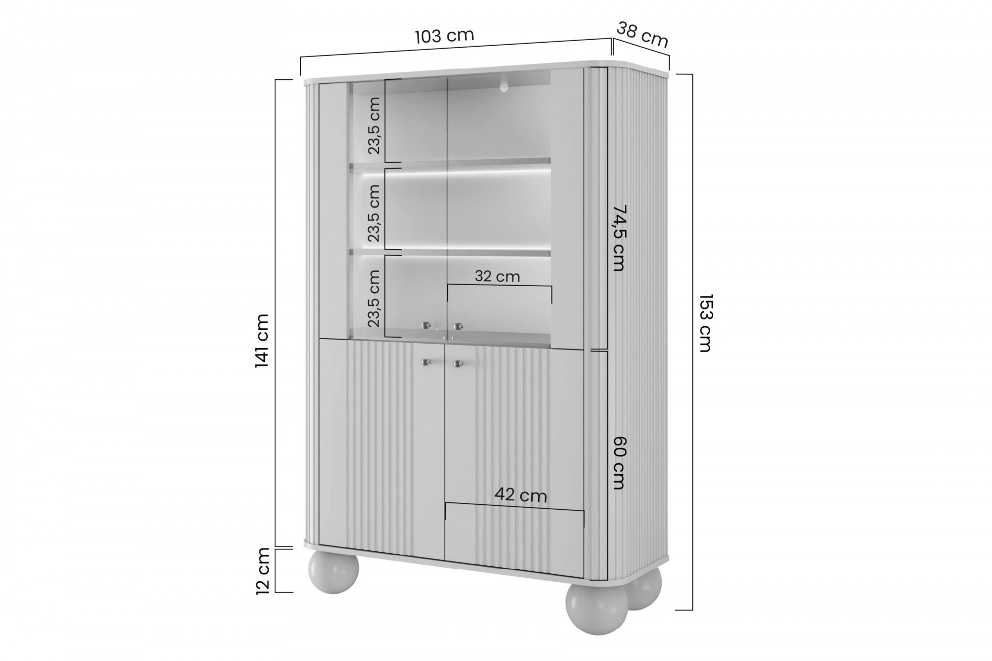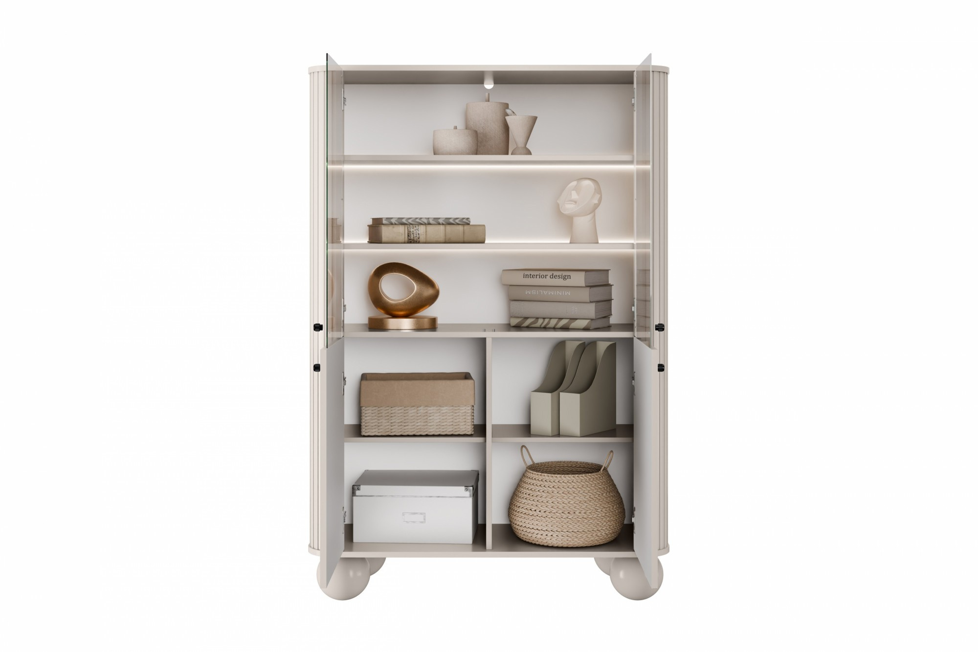 VESPER VITRÍNA 103 4D - kašmír mdf / kašmír / černé úchyty / nohy koule