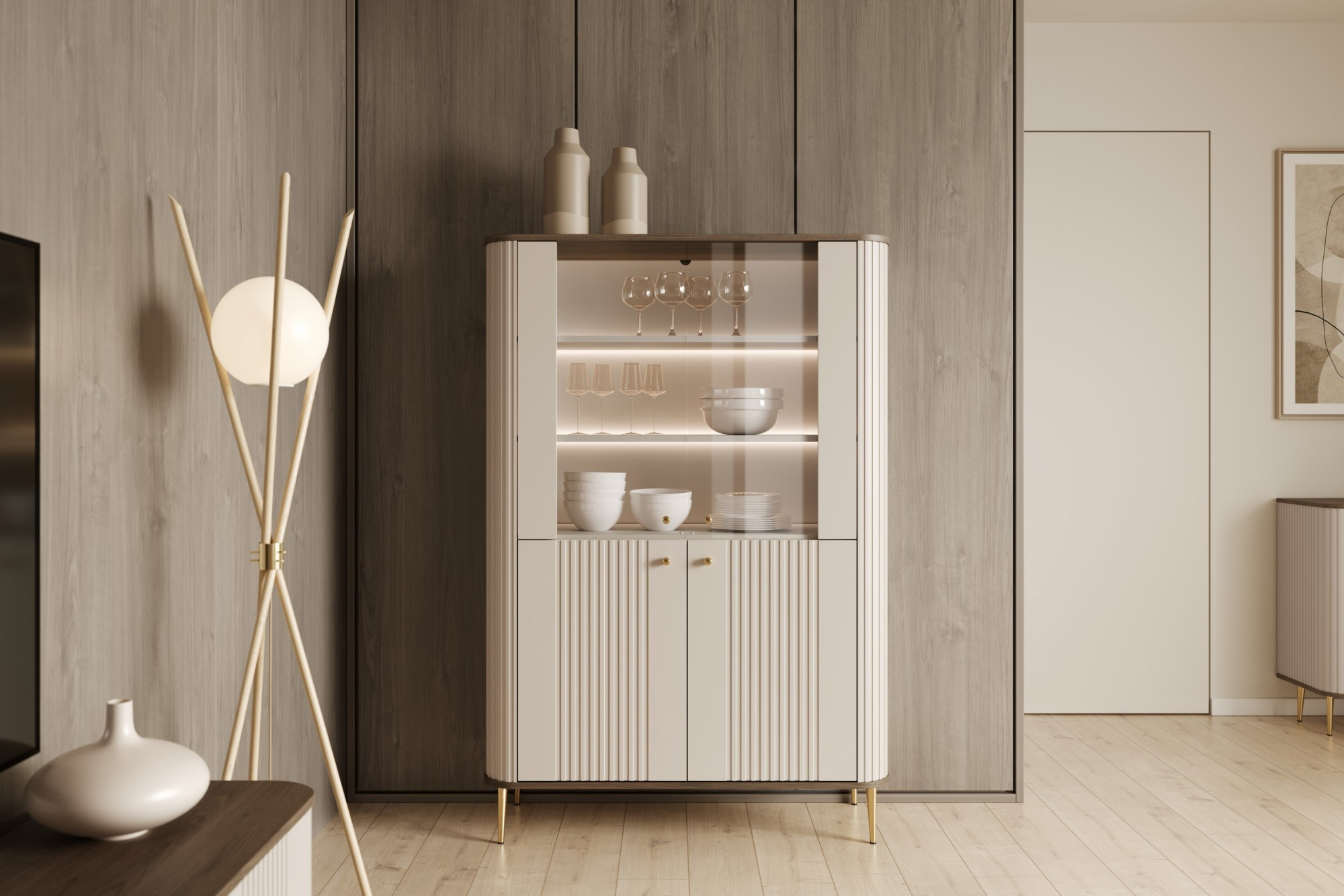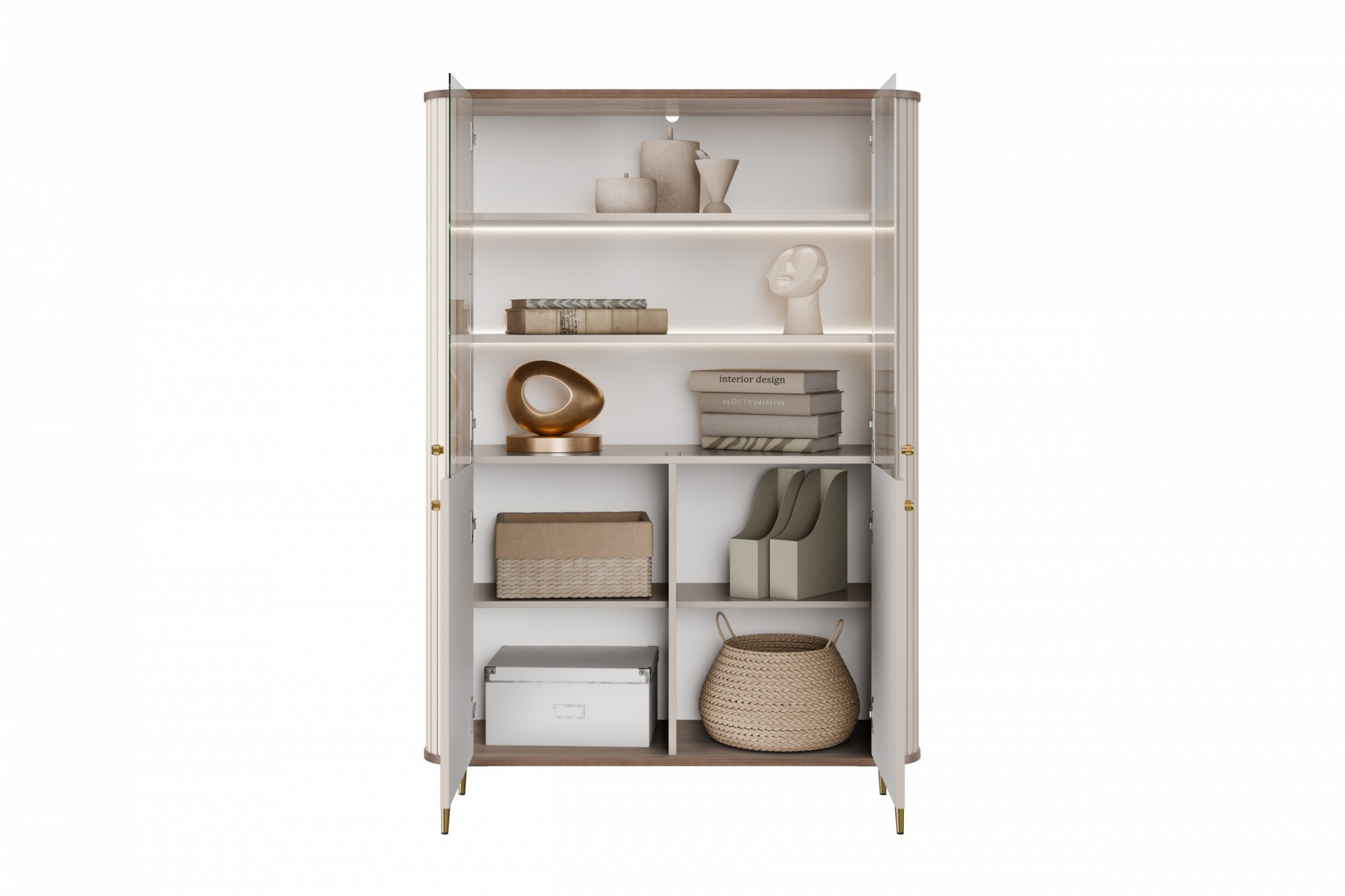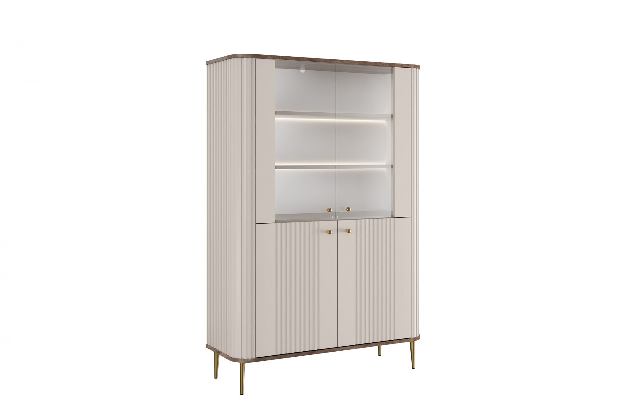 VESPER VITRÍNA 103 4D - kašmír mdf / ořech / zlaté nohy