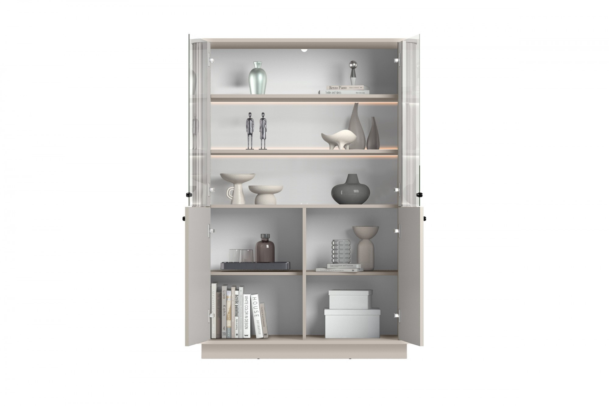 VESPER VITRÍNA 103 4D - kašmírová MDF / kašmír / černé úchyty / sokl
