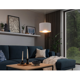 Závěsná lampa Vespillo je stylový a funkční osvětlovací prvek, ideální pro moderní interiéry. Má maximální světelný výkon 15 W, což poskytuje dostatečné osvětlení prostoru a vytváří příjemnou atmosféru. Stínidlo, vyrobené z PVC tkaniny, dodává lampě elegantní vzhled a jemně rozptyluje světlo, čímž přidává místnosti teplou atmosféru. Pevná ocelová základna zajišťuje odolnost a stabilitu a lampa je vybavena standardní paticí E27, což umožňuje snadné osazení různými typy žárovek, jak tradičními, tak úspornými. Ideální pro obývací pokoj, jídelnu, kuchyň nebo ložnici, závěsná lampa Vespillo kombinuje estetiku a funkčnost, čímž zvyšuje charakter každého interiéru.