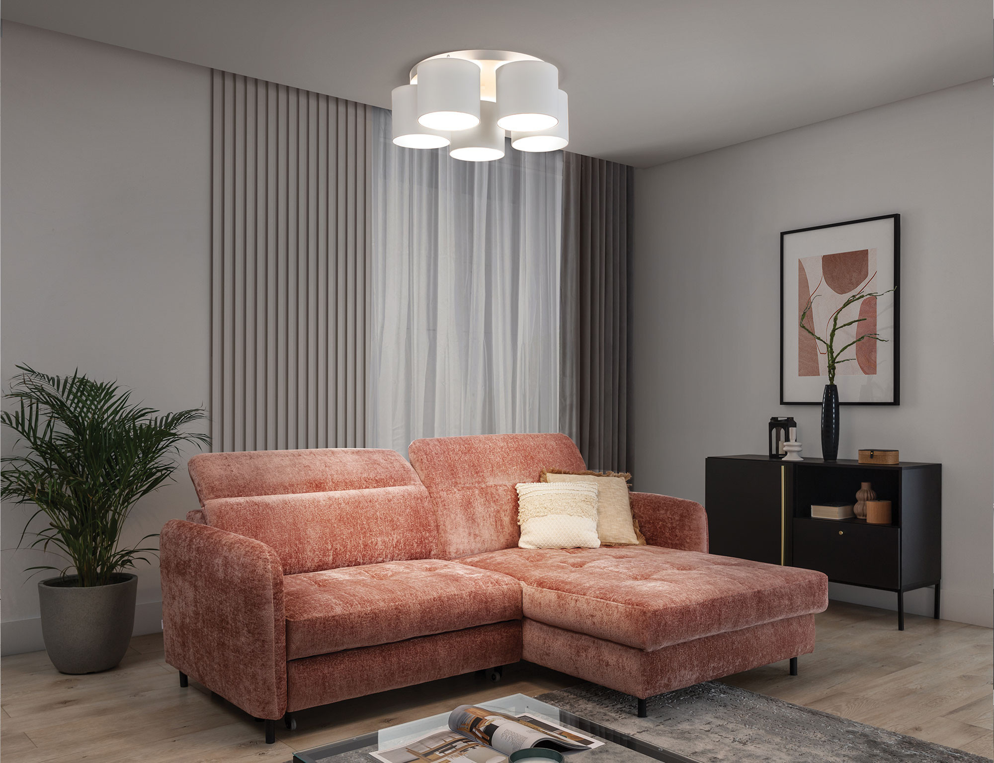 Stropní lampa Vespillo je elegantní stropní světlo, které je ideální pro moderní interiéry. Je vybavena stínidlem z PVC tkaniny, které nejen přidává styl, ale také zajišťuje měkké a příjemné rozptýlení světla. Pevná ocelová základna zajišťuje odolnost a stabilitu konstrukce. Lampa má maximální světelný výkon 15 W a je vybavena standardní paticí E27, což umožňuje snadné osazení různými žárovkami, jak tradičními, tak úspornými. Ideální pro obývací pokoj, ložnici nebo jídelnu, stropní lampa Vespillo kombinuje funkčnost a estetiku, čímž vytváří útulnou a stylovou atmosféru v každé místnosti.