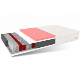 Základem matrace ATINA je vícekapsový formát. Pružin je více než ve standardních kapesních formátech. Matrace s více kapsami je rozdělena do 7 zón tvrdosti. Pružiny pracují nezávisle na sobě, takže dva spáči nepociťují nepohodlí při vzájemných pohybech. Pružiny se vyznačují vysokou odolností proti deformaci a promáčknutí. Jsou vyrobeny technologií podvodního kalení NanoHARD, která výrazně zvyšuje jejich životnost. Na jedné z použitelných stran je termoplastická pěna VISCO. Má jedinečnou strukturu, která reaguje na teplotu a tlak a dokonale se přizpůsobuje tvaru těla. Specifikace: tvrdost: H4 hard; H3 medium hard, tloušťka: 19 cm. Složení: Polyuretanová pěna T25: 2 cm, Termoplastická pěna VISCO: 2 cm, Potah: 1 cm, Výška pružiny: 12 cm, Polyuretanová pěna T25: 2 cm.