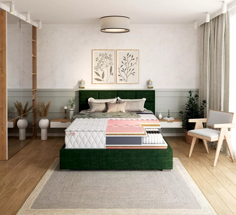 Vícekapsová matrace CALYPSO Model CALYPSO je pěnová matrace s více kapsami. Její střední část má formát s více kapsami, který je z obou stran polstrován různými druhy pěny a kokosu. Pružiny, které jsou uloženy v oddělených látkových kapsách, byly vyrobeny technologií dvojitého tvrzení NanoHARD, která výrazně prodlužuje jejich životnost. Rozdělují celou plochu matrace na 7 zón, které podporují tělo během spánku. Hlava, pánev nebo stehna tak budou mít adekvátní oporu pro svou hmotnost. Navíc díky nezávislé funkci pružin nebudou dva lidé spící vedle sebe cítit, že se jejich soused kroutí. Výhody matrace CALYPSO Sedmizónová matrace ideálně podpírá celé tělo Pohodlí a odolnost Oboustranná matrace - H3 a H4 Má antialergické vlastnosti Ideální podpora pro osoby s bolestmi zad Velmi dobrá cirkulace vzduchu Základ matrace je obohacen o vrstvu termoplastické pěny VISCO s výjimečnými vlastnostmi. Materiál se pod vlivem hmotnosti a tepla přizpůsobuje tělu spící osoby. Výsledkem je blažený komfort. na druhé straně je vrstva latexové pěny. Je pozoruhodně měkká, pružná a odolná. Díky perforované struktuře se dokonale přizpůsobuje siluetě a odvětrává stélku, čímž eliminuje hromadění vlhkosti v matraci, což se projevuje v potlačení množení alergenních mikroorganismů. Pro nejnáročnější zákazníky byl model obohacen o visco pěnu V40, která díky svému speciálnímu profilu ještě lépe přilne k tělu, zabraňuje vzniku proleženin a snižuje bolesti zad. Prodyšnost, pružnost a odolnost je dána přidáním kokosové rohože do celku. Matrace má certifikát OEKO-TEX® Specifikace: tvrdost: H4 tvrdá; H3 středně tvrdá, tloušťka: 32 cm. Složení: profilovaná pěna VISCO V40: 4 cm, latex: 4 cm, užitná plocha: oboustranná , kokosová vložka: 1 cm, polyuretanová pěna T25: 2 cm, výška pružiny: 12 cm, polyuretanová pěna T25: 6 cm, profilovaná pěna VISCO: 2 cm, kokosová vložka: 1 cm, potah: 1 cm.