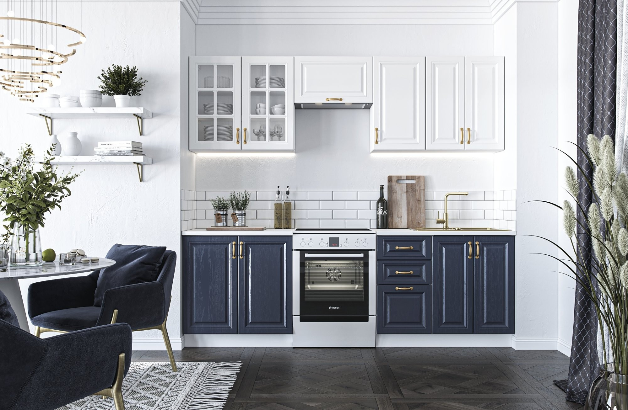 Kuchyňská linka VIKTORIA 240, Bílá/Tmavě modrá