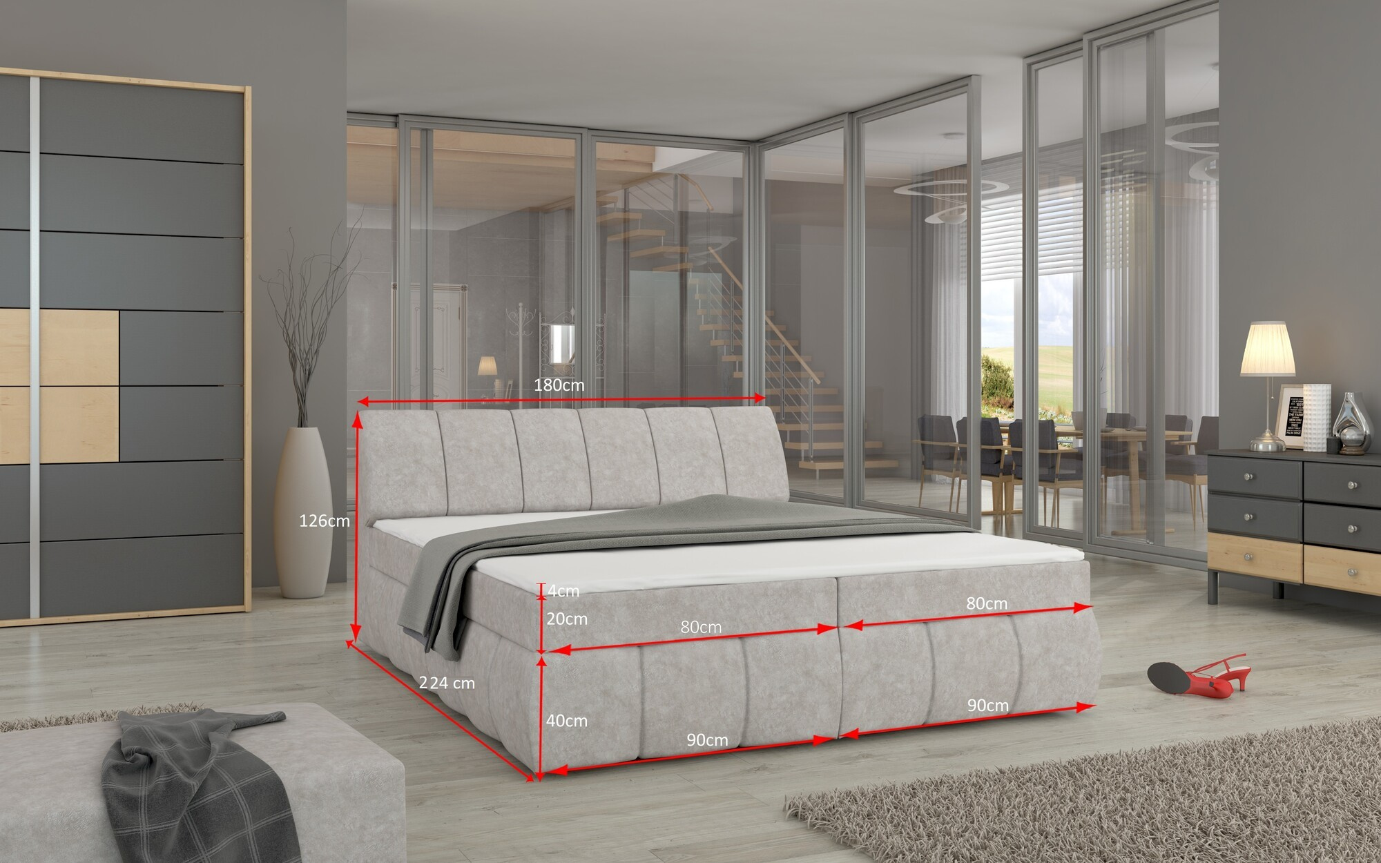 Vincenzo je prostorná, nenáročná a originální kontinentální postel typu boxspring, která se vyznačuje svou výjimečnou měkkostí a jedinečným designem. Vzhled Vincenza je ovlivněn jak boxy kolem postele, tak čelem postele vybaveným dodatečnou pěnou, která je zdobena elegantním podélným prošíváním. Pozoruhodný efekt je také zvýrazněn čalouněním, které je k dispozici v mnoha barvách. Prostorná postel Vincenzo s ložnou plochou: 140/160/180 x 200 cm je ideálním místem k odpočinku kdykoliv během dne nebo noci. Mezi další výhody tohoto modelu můžeme zařadit 20 cm vysokou bonelovou matraci s přídavnými vrstvami - horní a spodní, vyrobenou z měkké a pružné pěny T25 a 4 cm silný čalouněný topper. Pružinový mechanismus usnadňuje přístup k úložným prostorům na lůžkoviny, které se nacházejí v úložném boxu postele. Vincenzo - kus nábytku v moderním klasickém stylu - splňuje moderní pohled na interiérový design jedinečné ložnice. Pokud hledáte postel, která vás potěší na 100 % a zároveň je jedinečná - může být jen jedna volba.