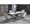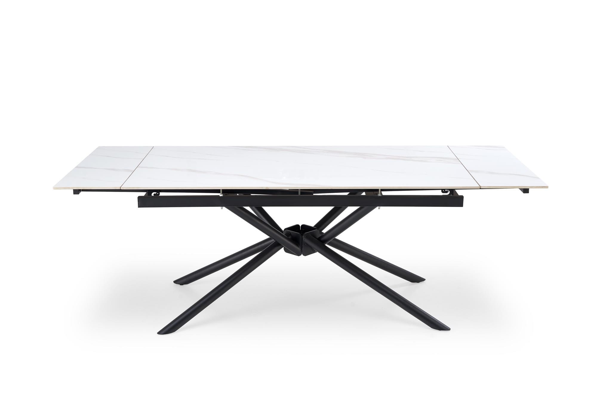 rozměry: 160-220/90/75/125 cm; rozkládací stůl, materiál: slinutý materiál / ocel s práškovým nástřikem, barva: deska - bílý mramor, nohy - černé