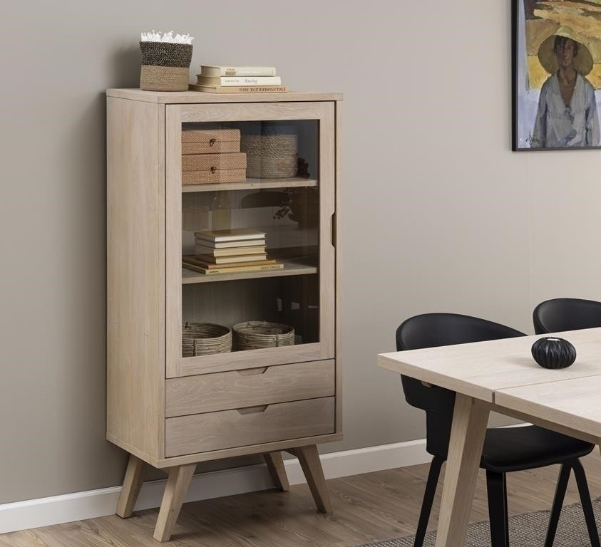 Stylová vitrína A-Line je dalším prvkem kolekce A-Line. Kolekce je určena pro tlumené interiéry. Světlé dřevo se velmi dobře hodí k kancelářskému interiéru. Vitrína byla vyrobena z dubového dřeva. Další umístění skla na přední stranu vitríny jí dodává na eleganci. Základem vitríny jsou dubové nohy. Váha: 48,1 kg. Rozměry kartonu: 127cm x 80cm x 44cm