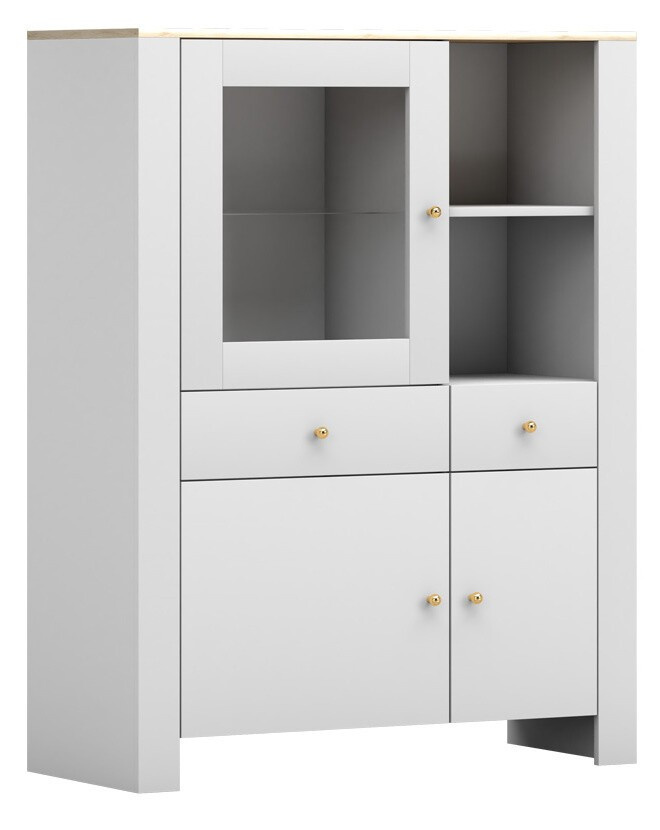 Vitrína AGAWA 02, Bílá/Dub Hikora