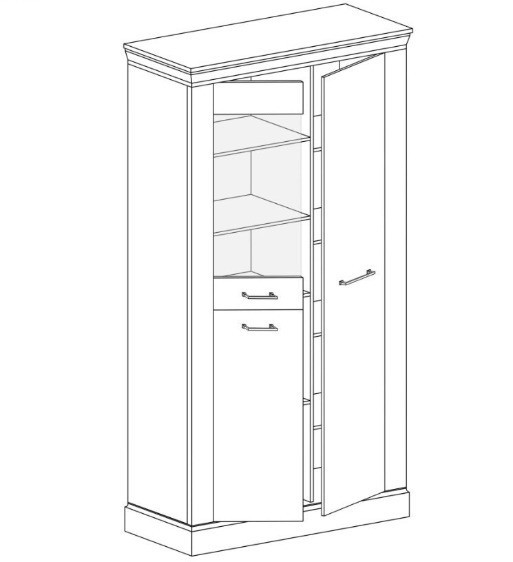 Objemná vitrína z kolekce Antica s jedinečným designem, který překvapí nejednoho návštěvníka. Nábytek má tři skříňky, dvě s masivními čely a jednu s tvrzeným sklem. Ve skříňkách je sedm polic, což dává obrovskou možnost snadné organizace, na jedno místo se vejde spousta věcí, ozdob, doplňků nebo oblečení. Vitrína je zakončena krásnými kovovými úchyty. Díky funkci tichého zavírání se nábytek snadno používá. K dostání ve dvou barevných provedeních.
