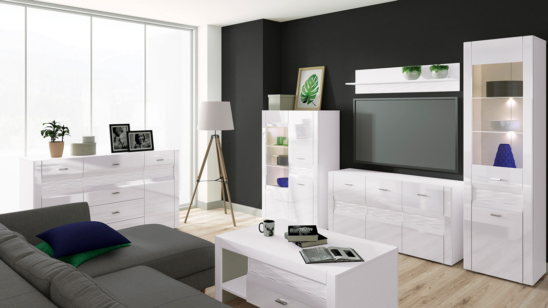 Vitrína ARKO 04, Bílá/Bílý lesk