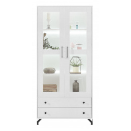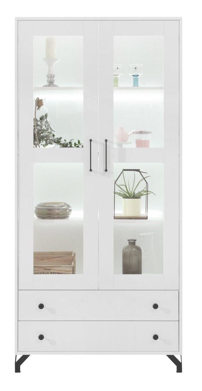 Vitrína BERGEN - BE2, Bílý Lux + Bílá vysoký lesk