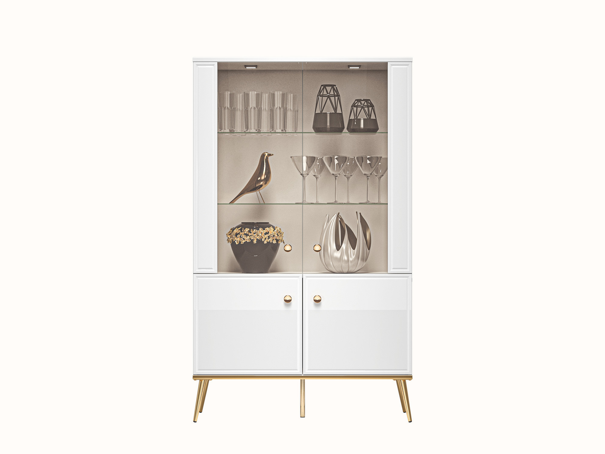 Vitrína GOLDIN 03, Alpská bílá/Bílý Lesk