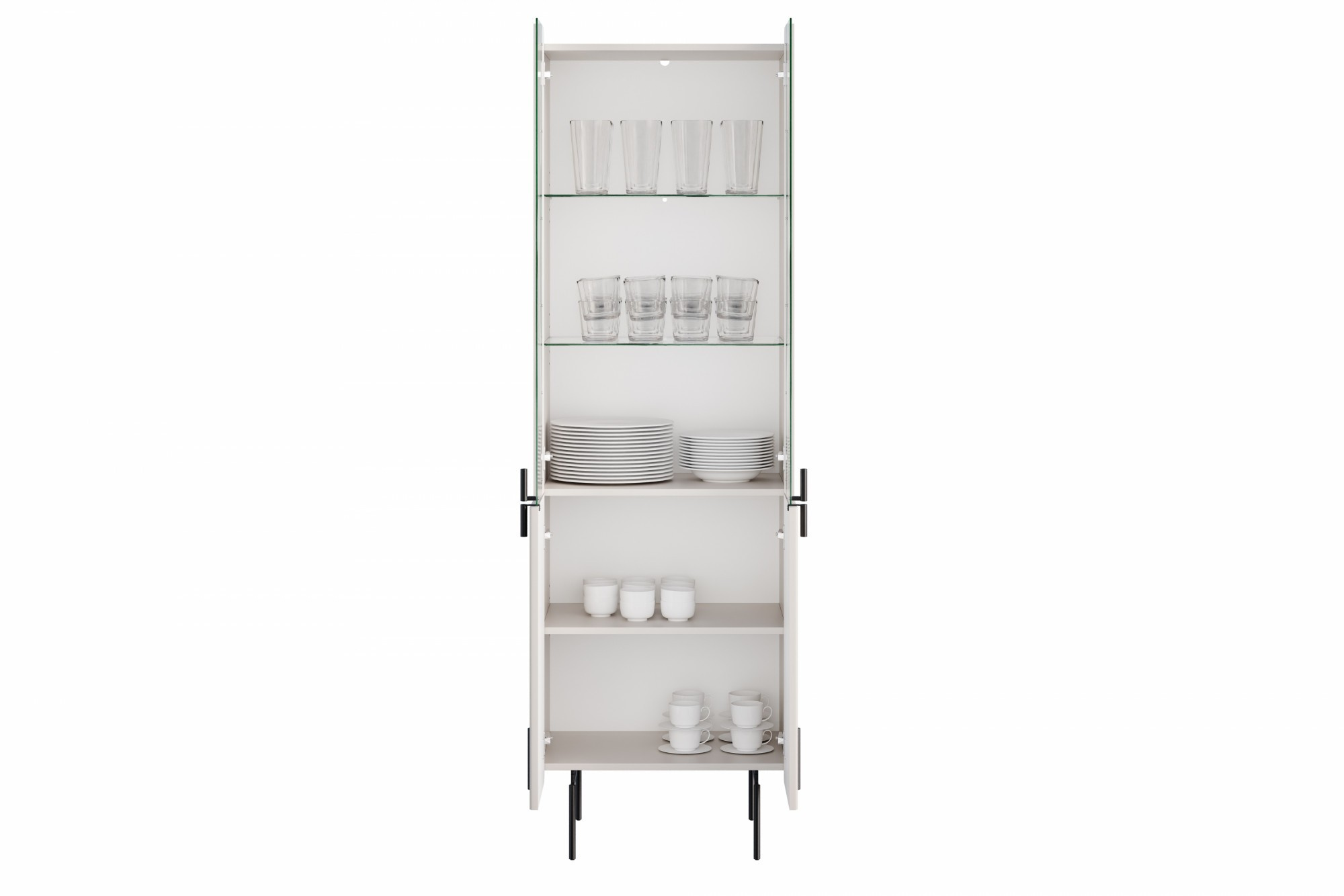 Vitrína Malmi 60 cm - kašmír / crema bianca / černé nožky, Šířka: 60, Výška: 190, Hloubka: 42, Výška nožek: 17, Hloubka desky: , Montáž: