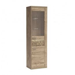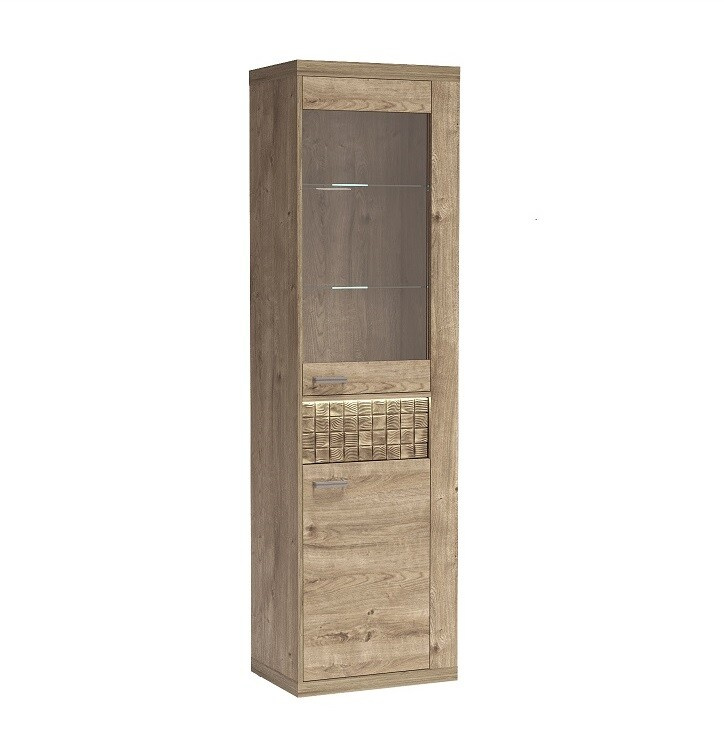 Krásná vitrína z kolekce Natural. Má dvoje dvířka, horní s čelní stranou z tvrzeného skla, spolu se dvěma skleněnými policemi, které jsou ideální pro vystavení knih, porcelánu nebo suvenýrů. Spodní skříňka s pevným čelem má za sebou jednu polici, která rozděluje prostor na polovinu. Samotné skříňky jsou rozděleny jednou zásuvkou se systémem Push To Open, který dodává nábytku na půvabu a podtrhuje jeho jemnost. Kovové úchytky a tiché zavírání skříněk svědčí o důrazu na detail. K dispozici v jedné barvě.