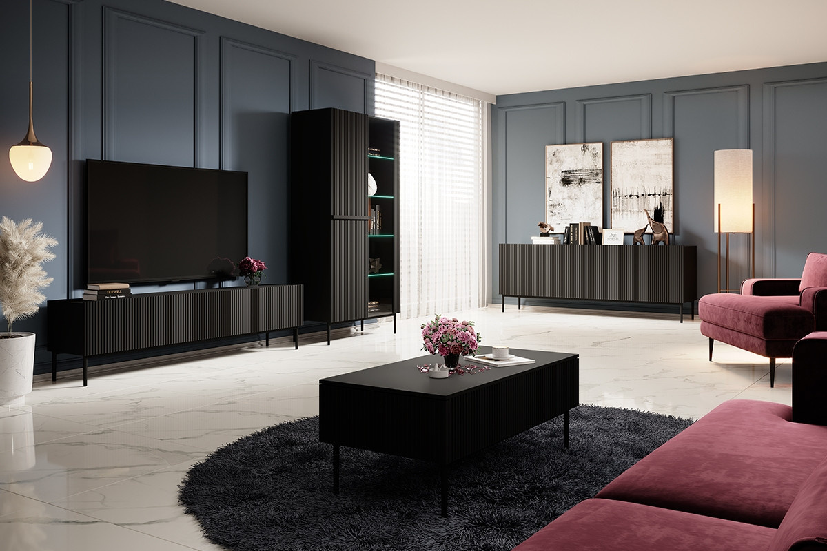 Vitrína Nicole - černý mat / černé nožky, Šířka: 100, Výška: 200, Hloubka: 45, Výška nožek: 20