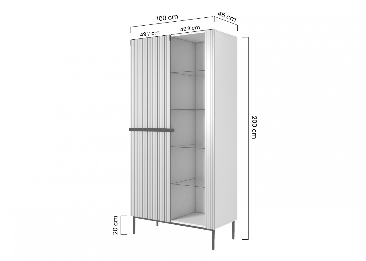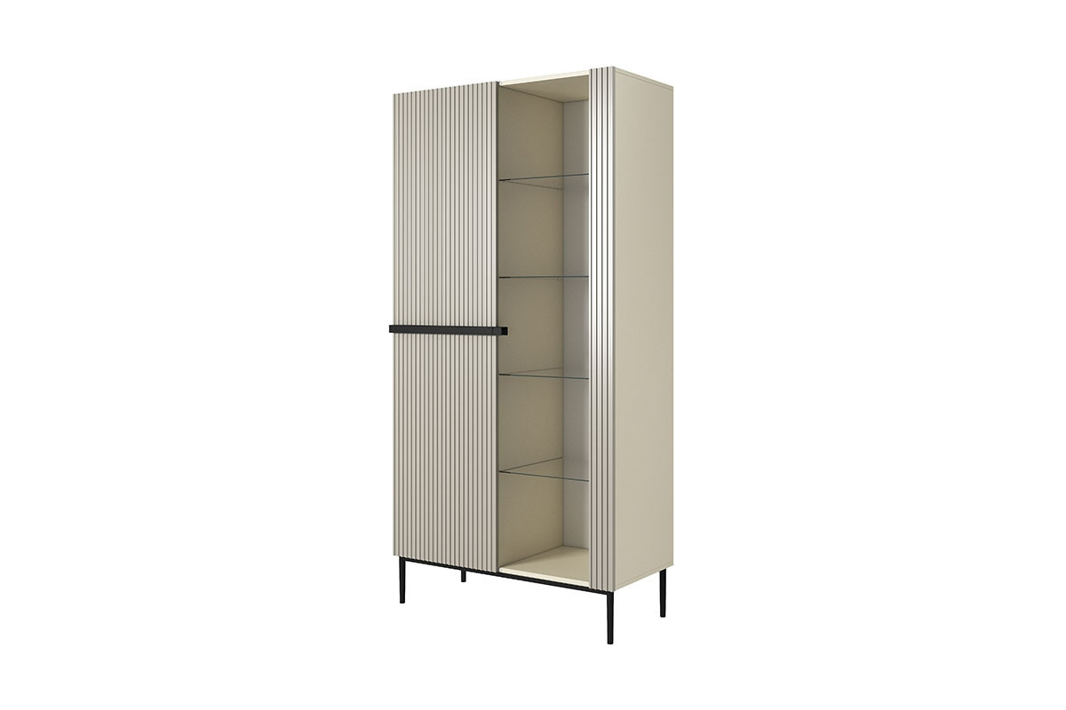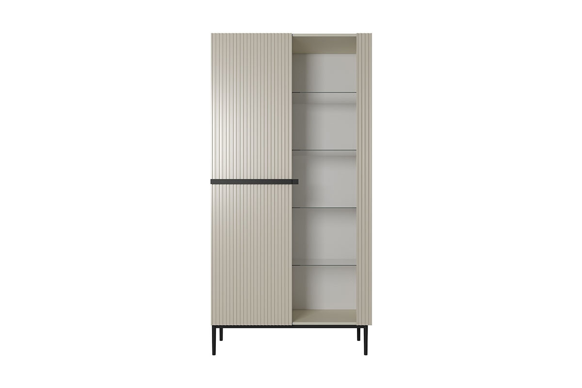 Vitrína Nicole - kašmír/ černé nožky, Šířka: 100, Výška: 200, Hloubka: 45, Výška nožek: 20