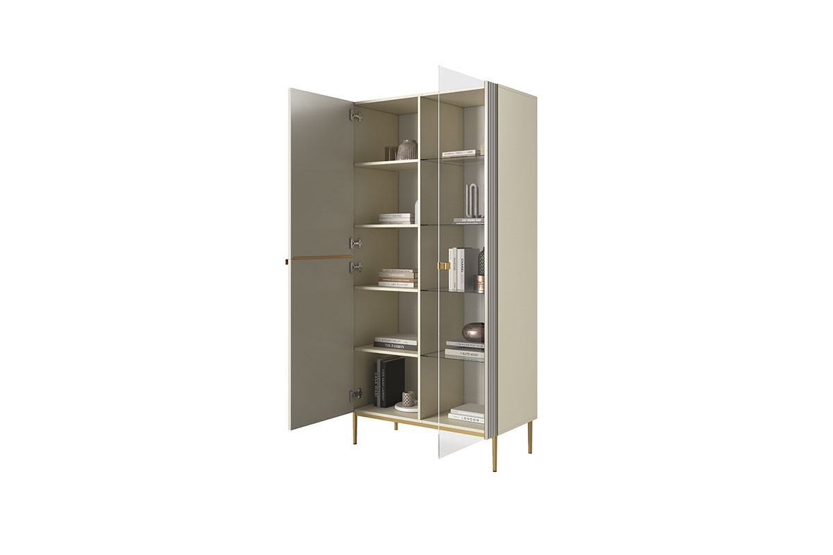 Vitrína Nicole - kašmír/ zlaté nožky, Šířka: 100, Výška: 200, Hloubka: 45, Výška nožek: 20
